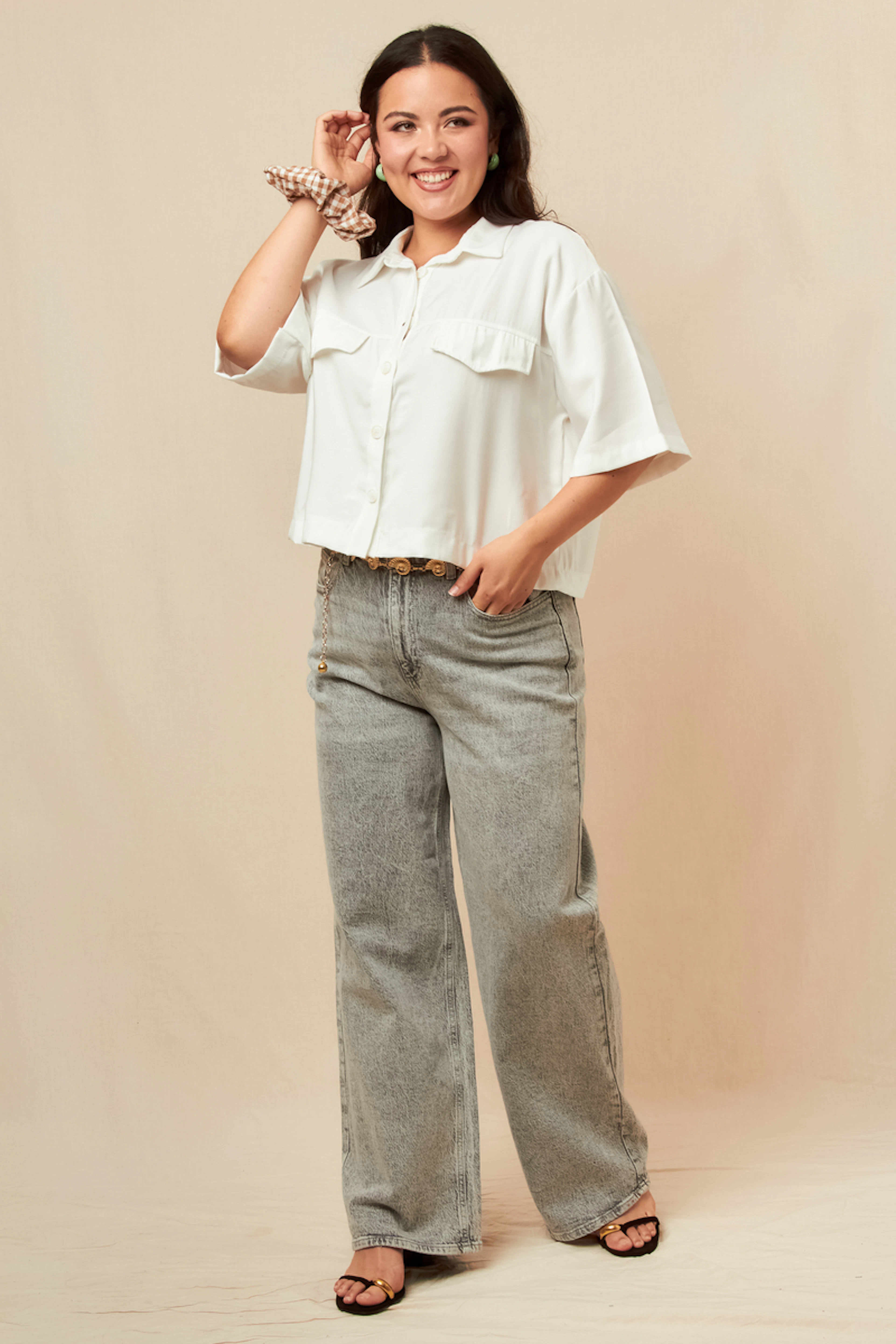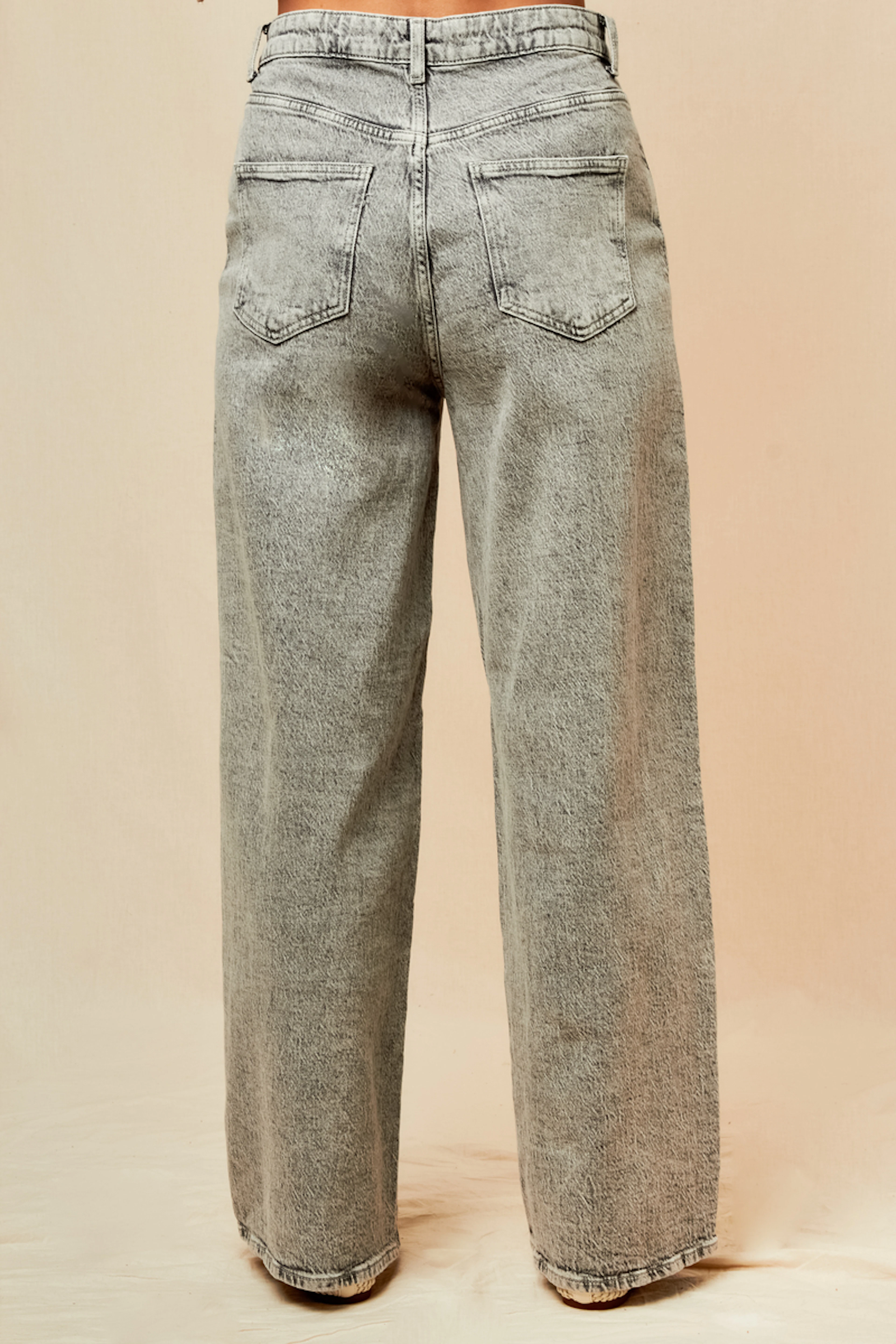 Associe ce jean à des bottines vintage et un pull douillet pour un look casual chic. • Jean wide leg en coton • Taille mi-haute flatteuse • Jambes larges et amples • Coupe décontractée et fluide • Teinte grise polyvalente