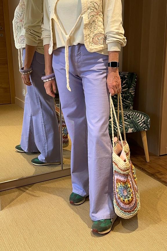 Portez ce jean violet avec un haut à motifs pour un style estival audacieux. Complétez avec des sandales à talons pour une touche de sophistication en plein été. • Jean en coton • Coupe bootcut • Taille haute flatteuse • Longueur parfaite • Broderie subtile ton sur ton Modèle qui taille petit, privilégiez la taille au dessus.
