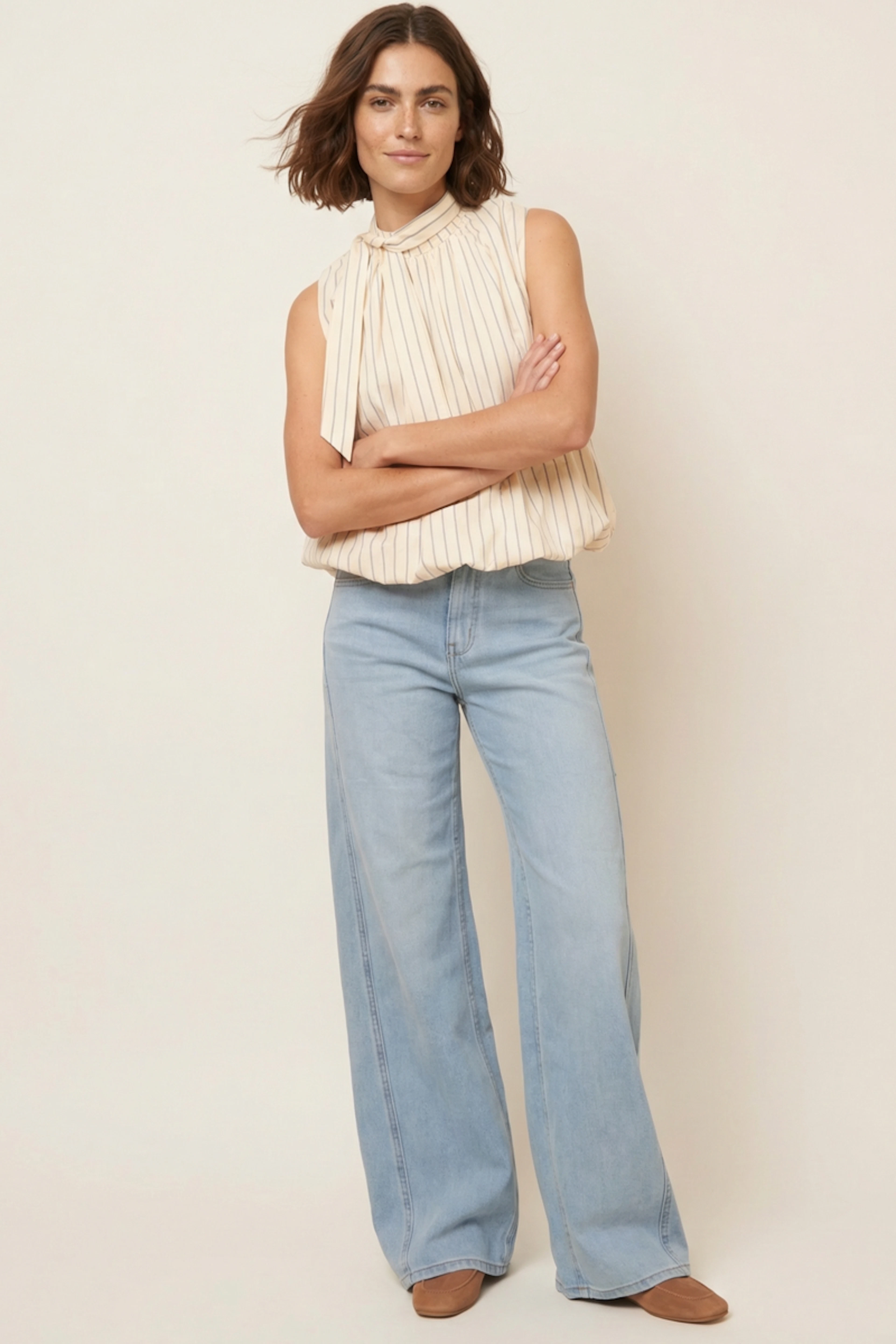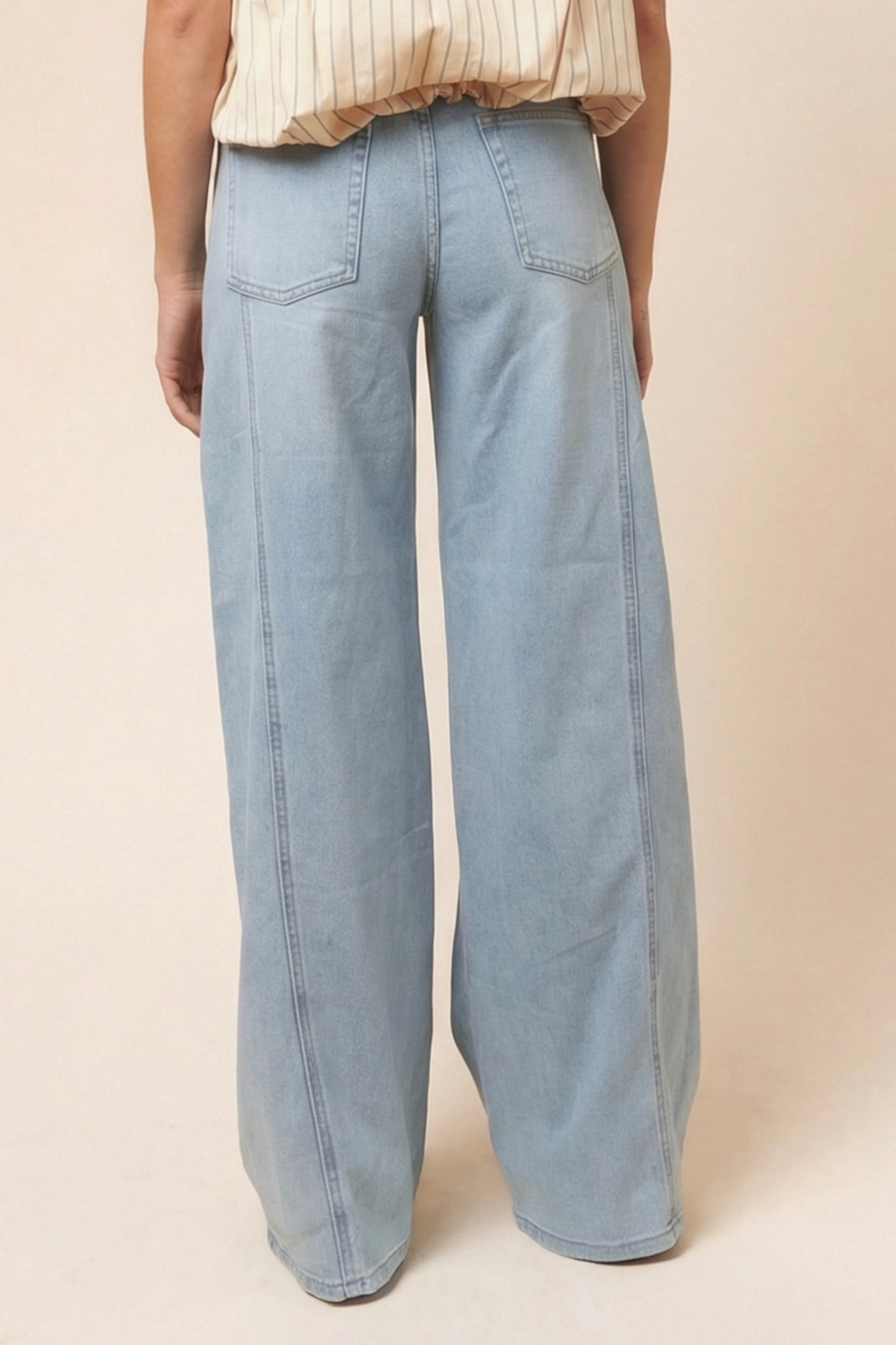 Associez ce jean à une chemise blanche et des baskets pour un look chic et décontracté. • Coupe wide leg • Taille légèrement haute • Délavage bleu clair • Allure décontractée • Parfait pour toutes occasions