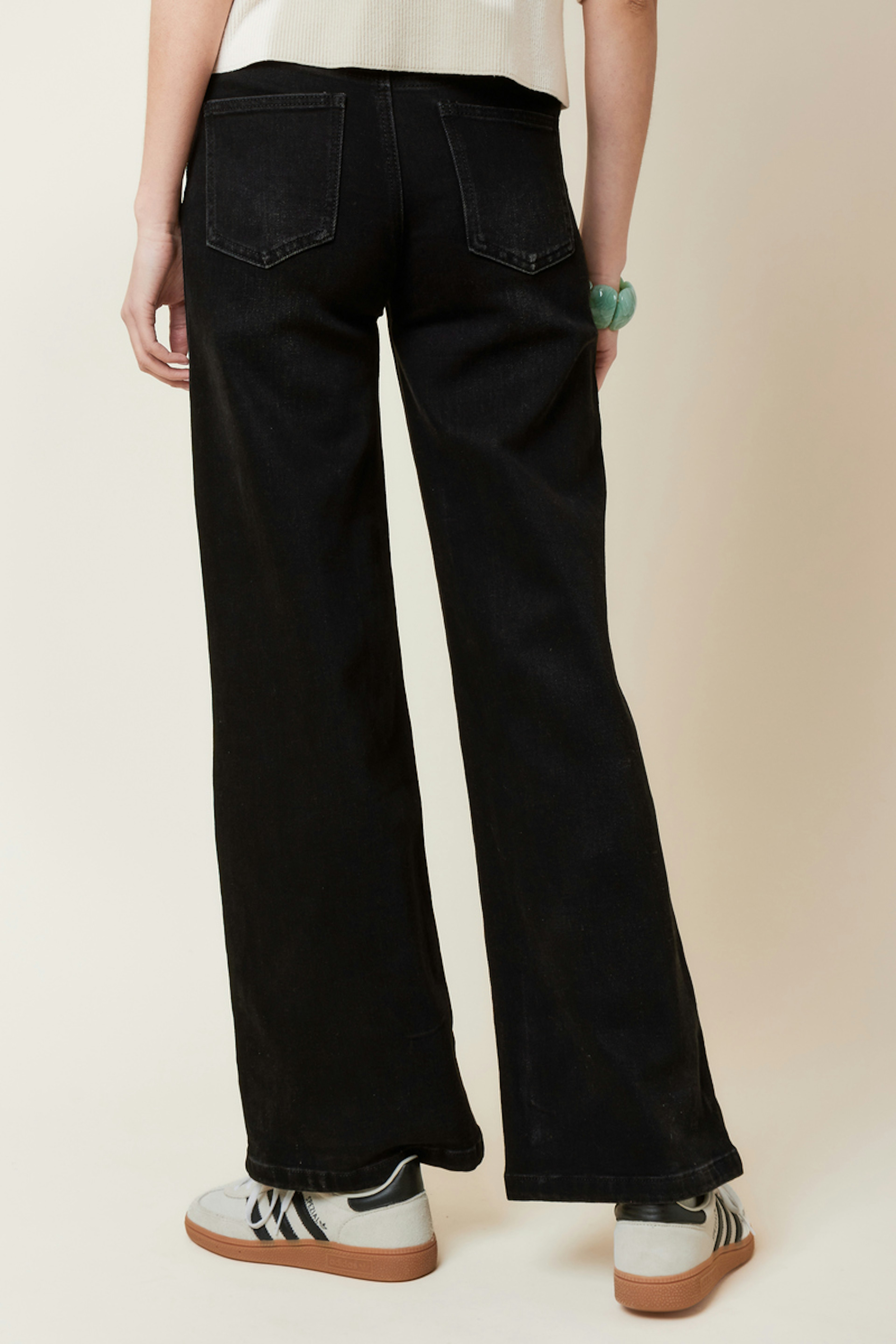 Optez pour un look chic et décontracté en associant ce jean avec une blouse vaporeuse et des bottines en cuir. Parfait en toute saison. • Jean noir, coupe wide leg • Taille haute flatteuse • Silhouette décontractée • Longueur ample • Adapté à toutes occasions