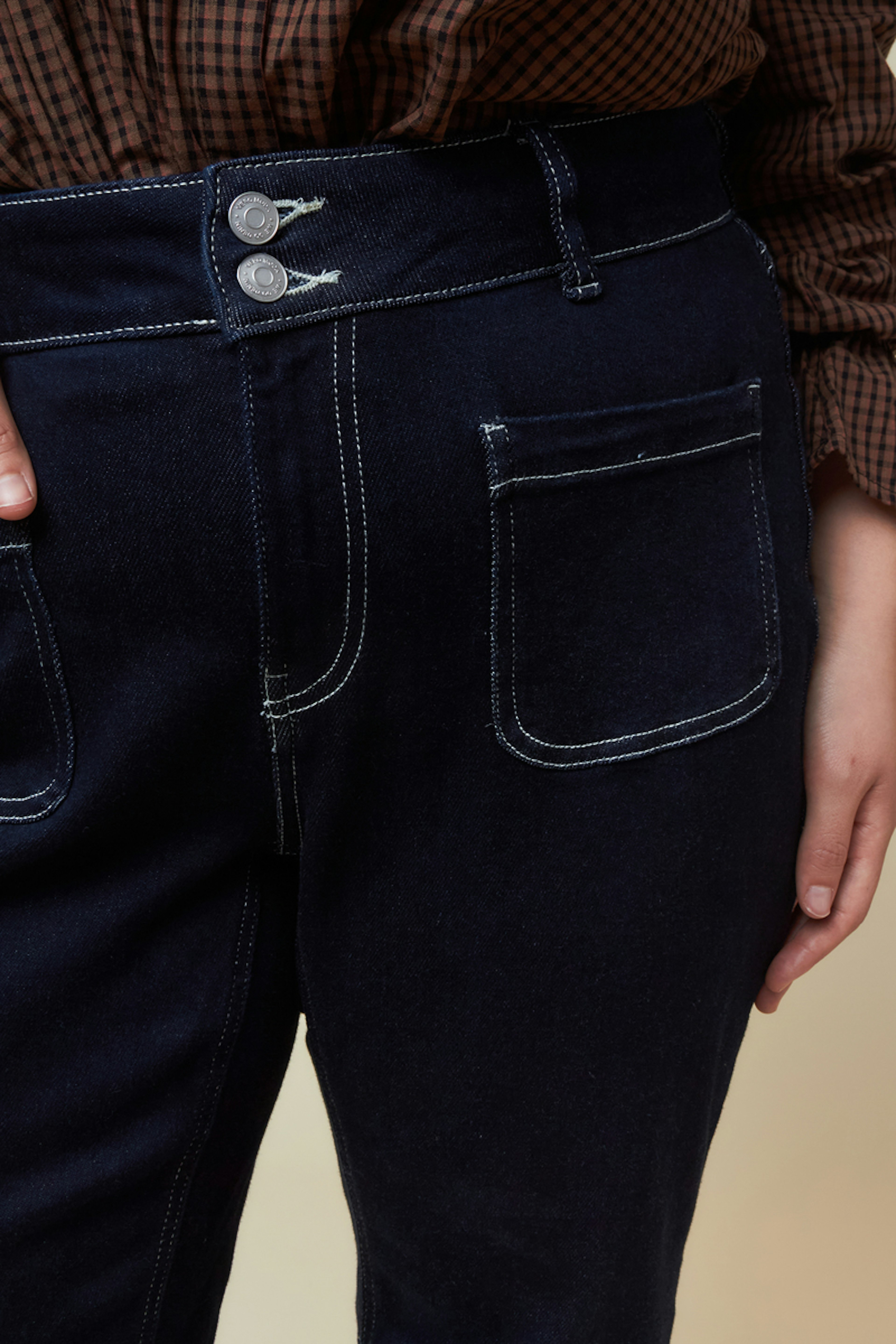 Transforme ce jean avec une chemise oversize et des bottines pour une allure chic décontractée. Idéal pour un style intemporel. • Jean coupe large • Taille haute flatteuse • Jambes longues et fluides • Poches avant visibles • Teinte bleue élégante