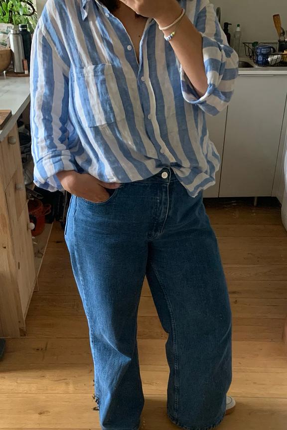 Associez ce jean flare à une chemise ajustée et des bottines pour un style chic et décontracté. Parfait pour toutes les saisons. • Jean flare • Taille haute • Quatre poches • Fermeture zippée et boutonnée • Bleu intense