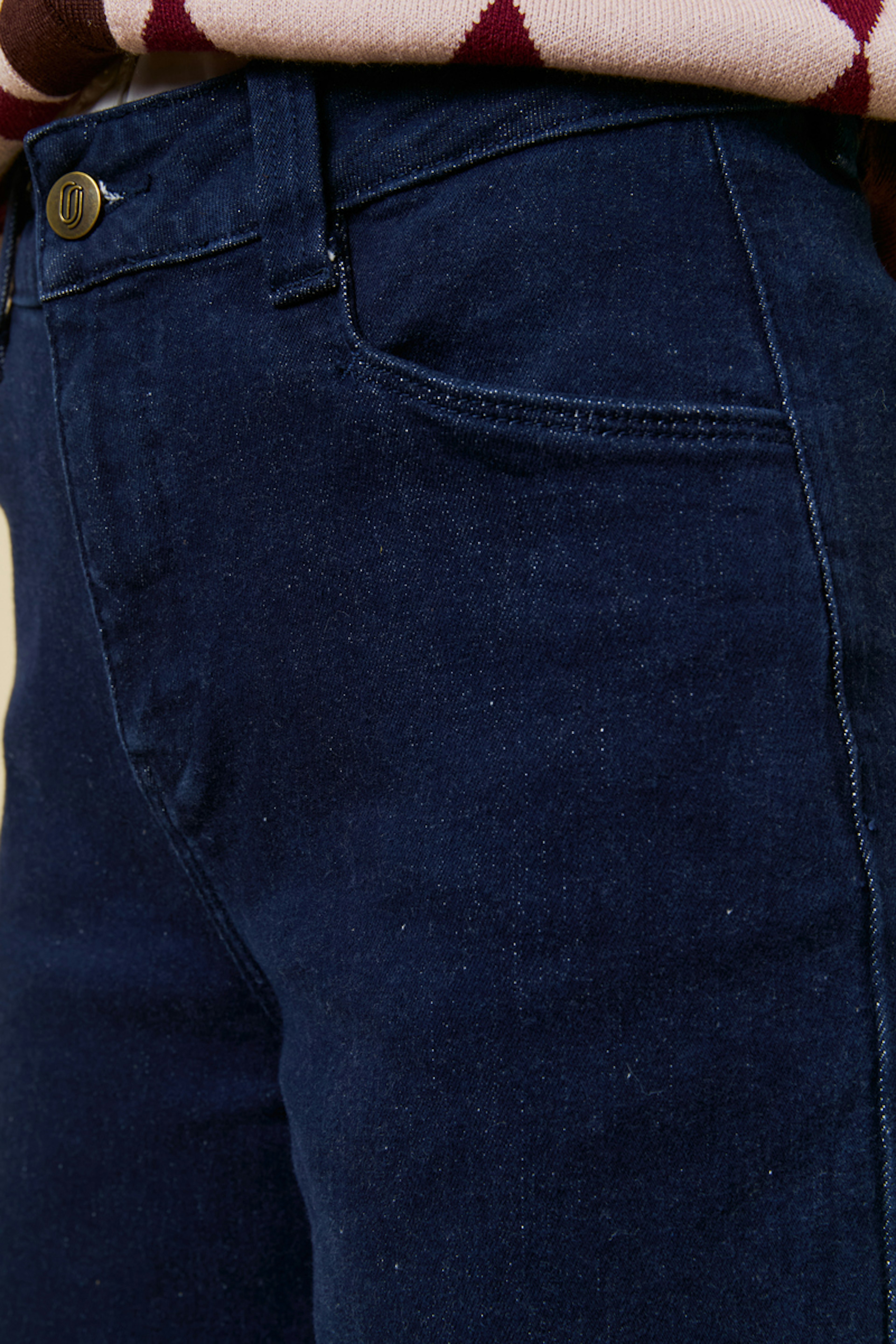 Associez ce jean avec une blouse en soie et des bottines pour une touche chic. Parfait pour les journées printanières ou automnales. • Jean large • Coupe ample • Taille haute • Jambes longues et fluides • Tissu bleu en coton doux