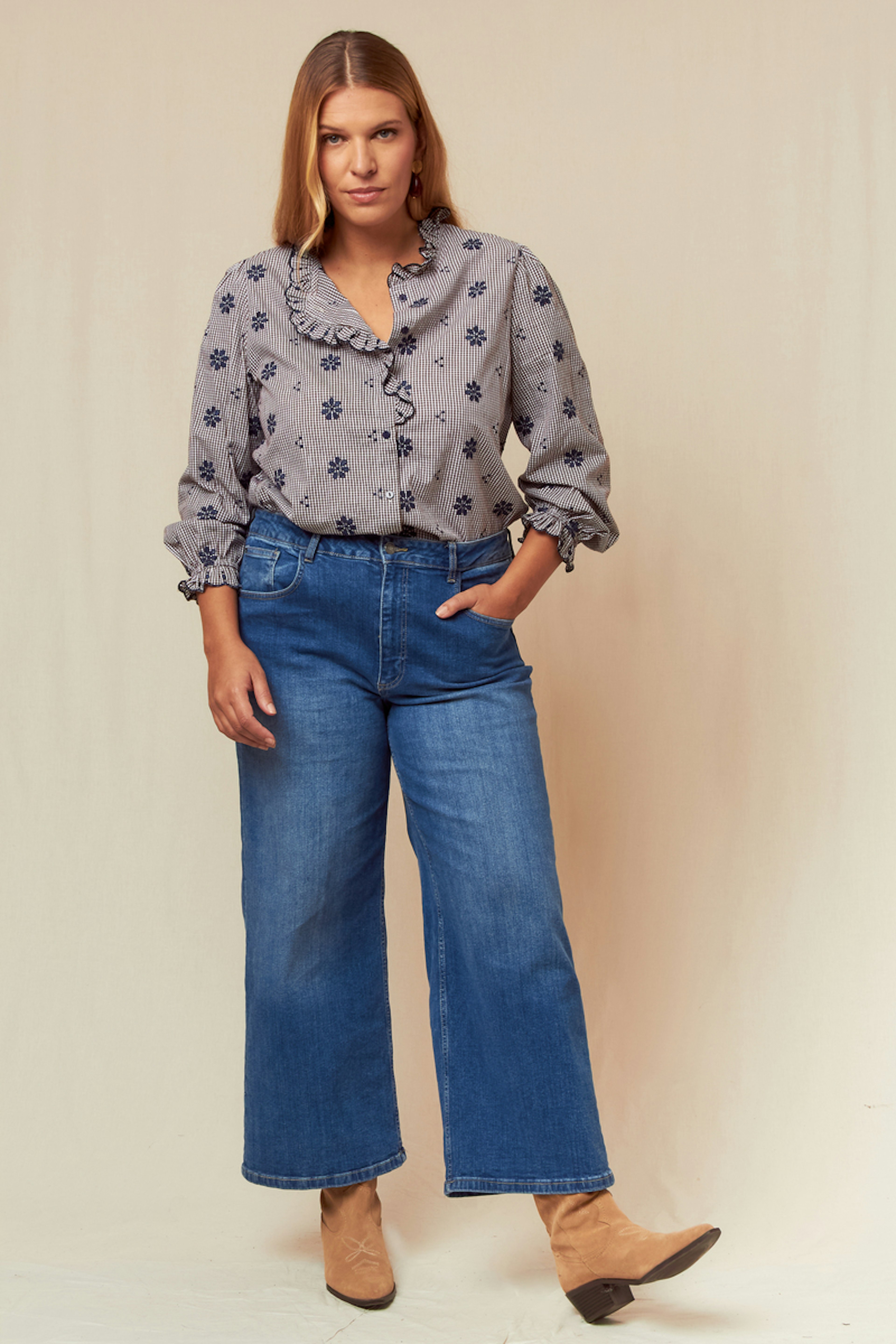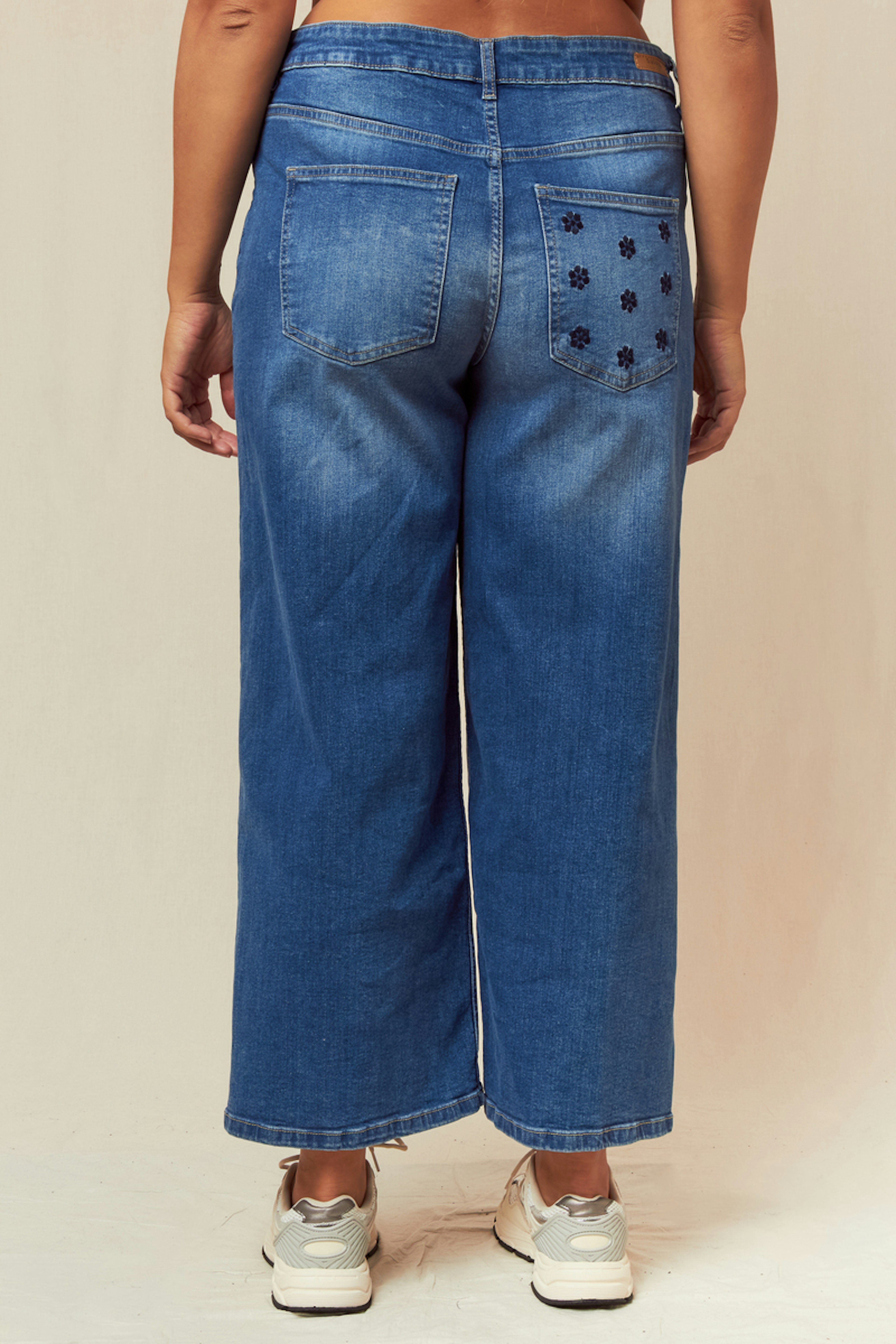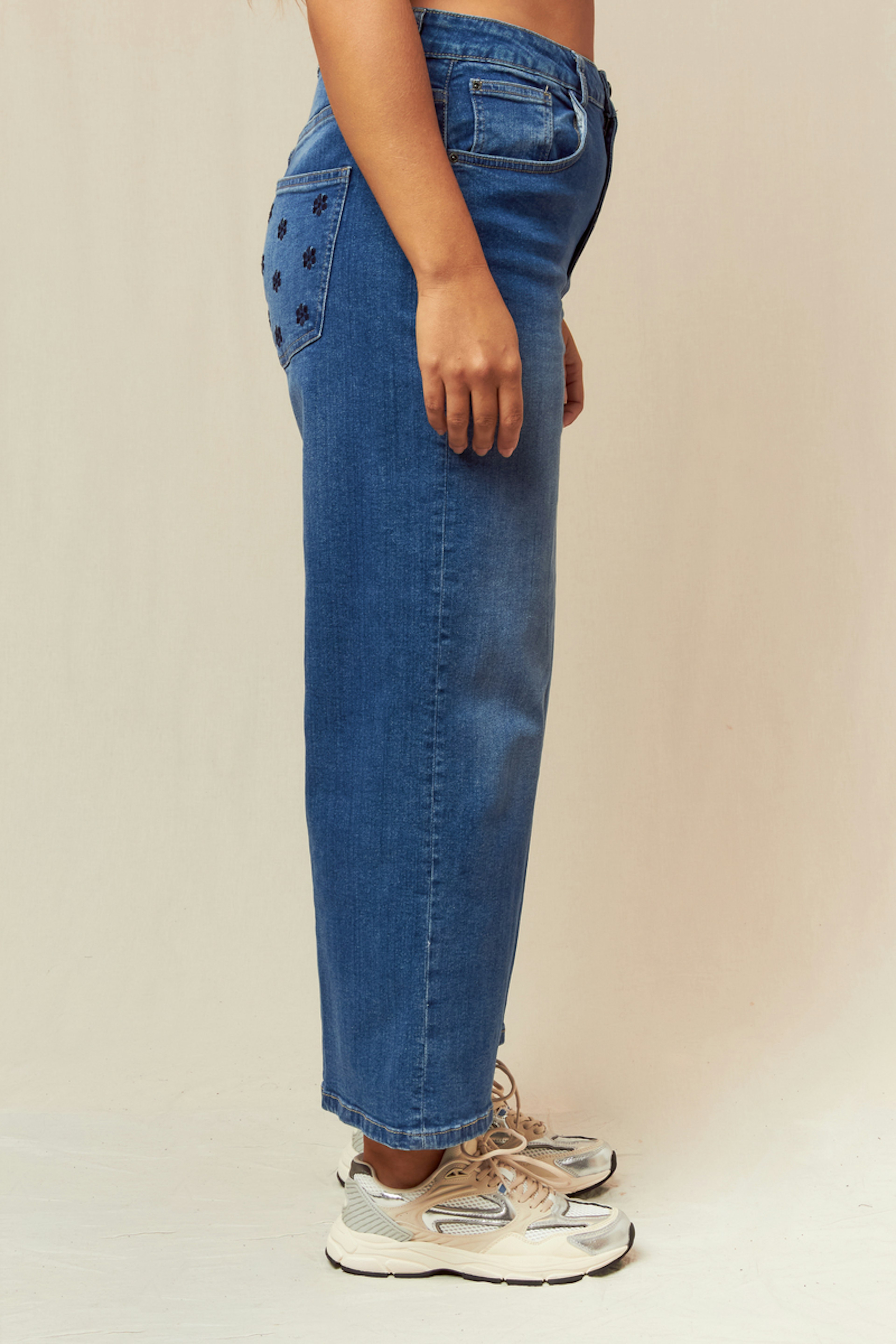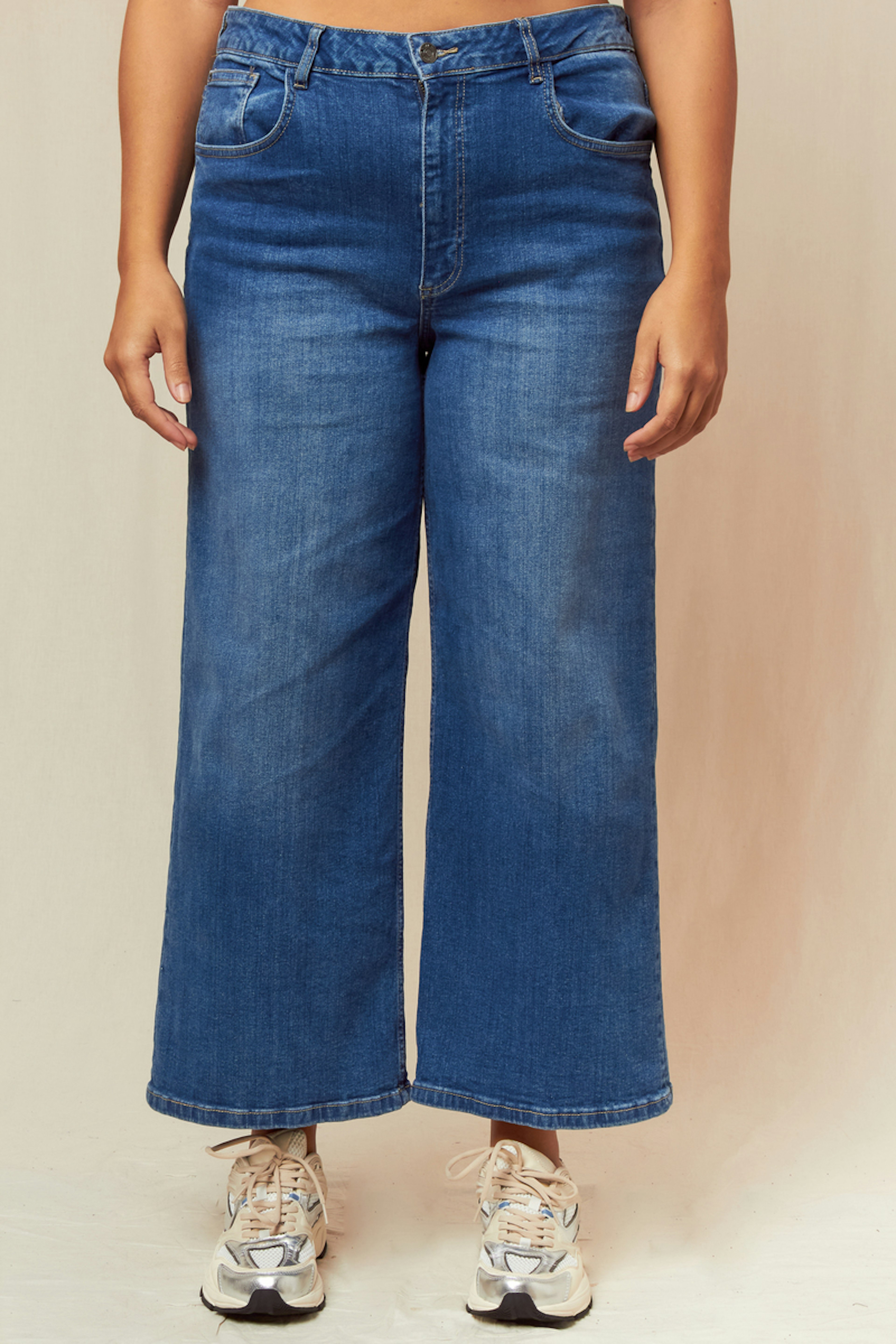 Optez pour ce jean ample pour un look à la fois chic et décontracté. Associez-le à un haut ajusté et des sandales élégantes. • Jean large • Coupe ample • Longueur pleine • Taille haute • Délavage bleu classique