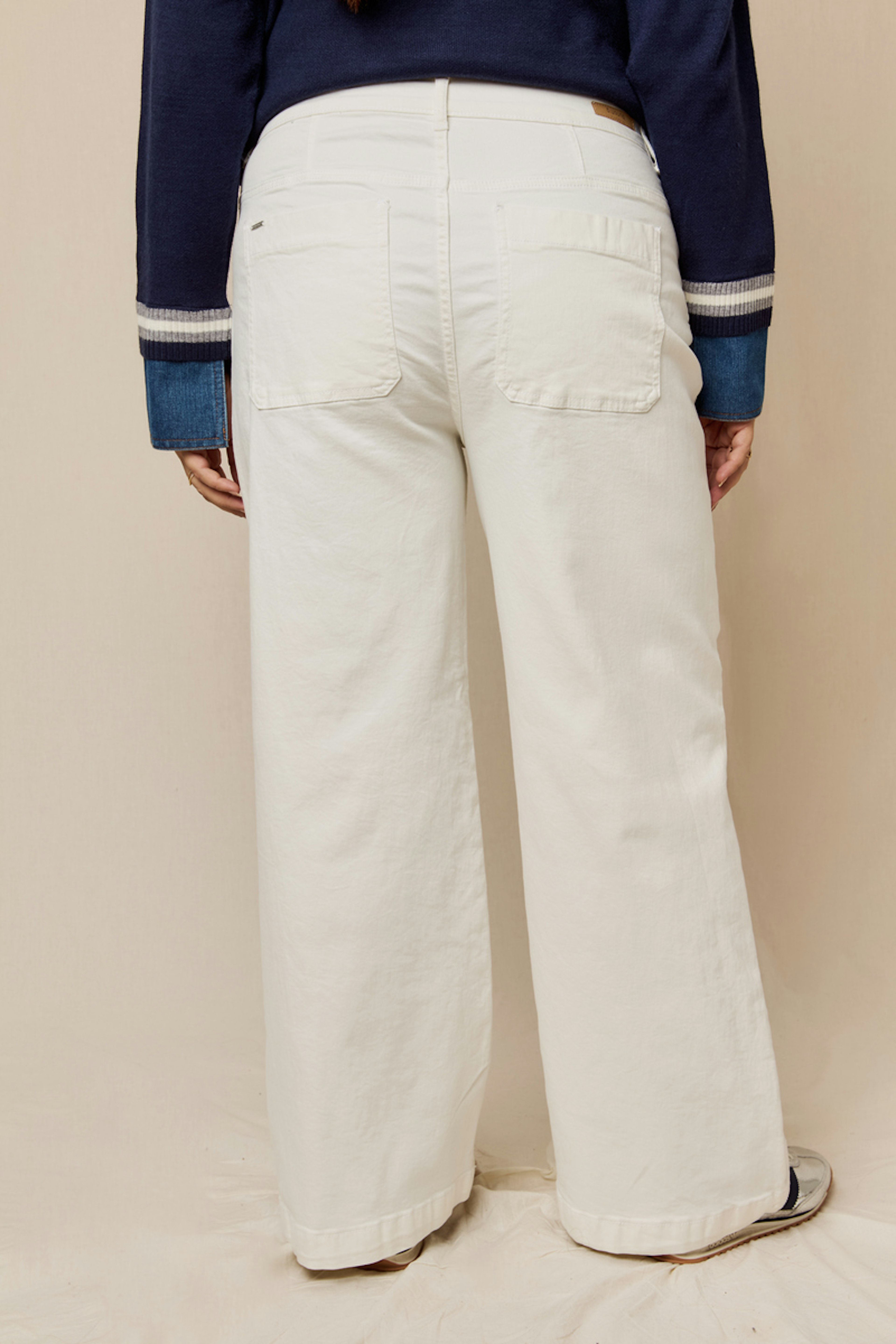 Un jean écru qui se marie facilement avec un haut coloré et des baskets pour un look décontracté. Parfait entre style et confort. • Jean large • Taille haute • Fermeture boutonnée • Longueur cheville • Couleur écru sophistiquée