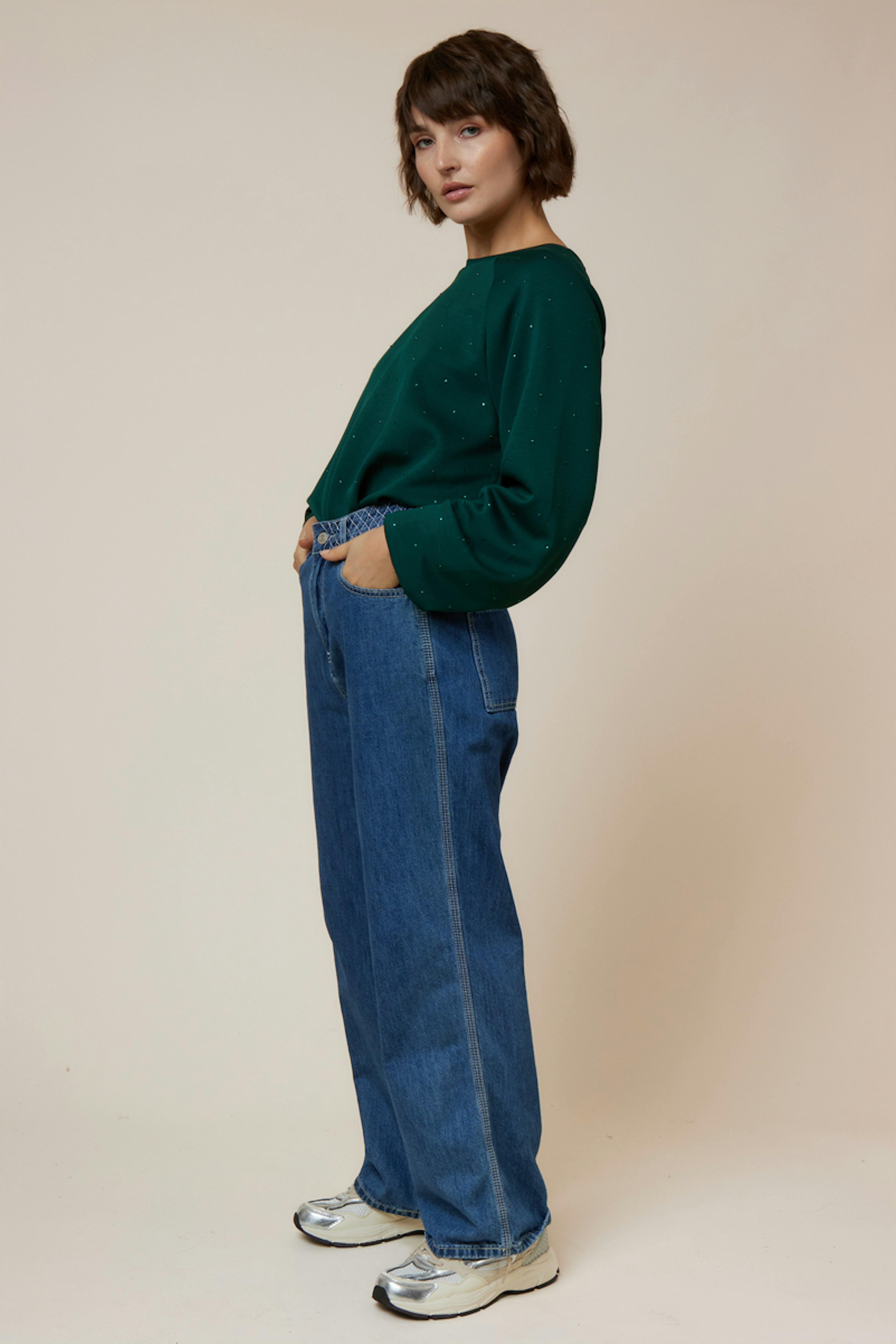 Associez ce jean ample avec un haut ajusté pour équilibrer la silhouette. Idéal avec des talons pour un look chic en toute saison. • Jean ample • Coupe large • Taille mi-haute • Longueur pleine • Détail couture contrastée