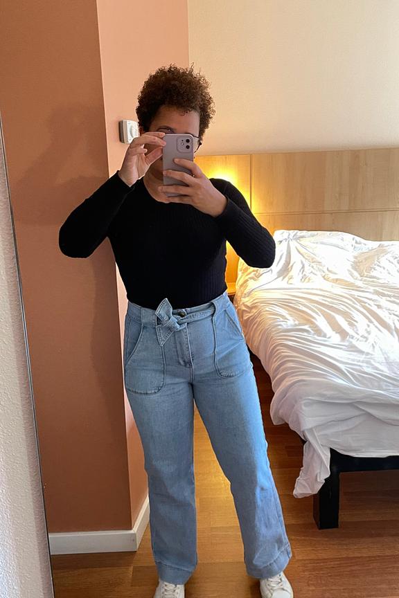 โ€ข Jean wide รฉvasรฉ bleu clair โ€ข Taille haute โ€ข Fermeture par bouton et zip โ€ข Passants pour ceinture incluse โ€ข XS : Taille Eu ( 34 ) / Taille US ( 24 ) / Tour de taille ( 61-65 cm ) / Tour de bassin ( 85-92 cm ) โ€ข S : Taille Eu ( 36 ) / Taille US ( 25/26 ) / Tour de taille ( 66-74 cm ) / Tour de bassin ( 93-98 cm ) โ€ข M : Taille Eu ( 38 ) / Taille US ( 27/28 ) / Tour de taille ( 75-80 cm ) / Tour de bassin ( 99-104 cm ) โ€ข L : Taille Eu ( 40 ) / Taille US ( 29/30 ) / Tour de taille ( 81-86 cm ) / Tour de bassin ( 105-110 cm) โ€ข XL : Taille Eu ( 42 ) / Taille US ( 31/32 ) / Tour de taille ( 87-91 cm ) / Tour de bassin ( 111-115 cm)