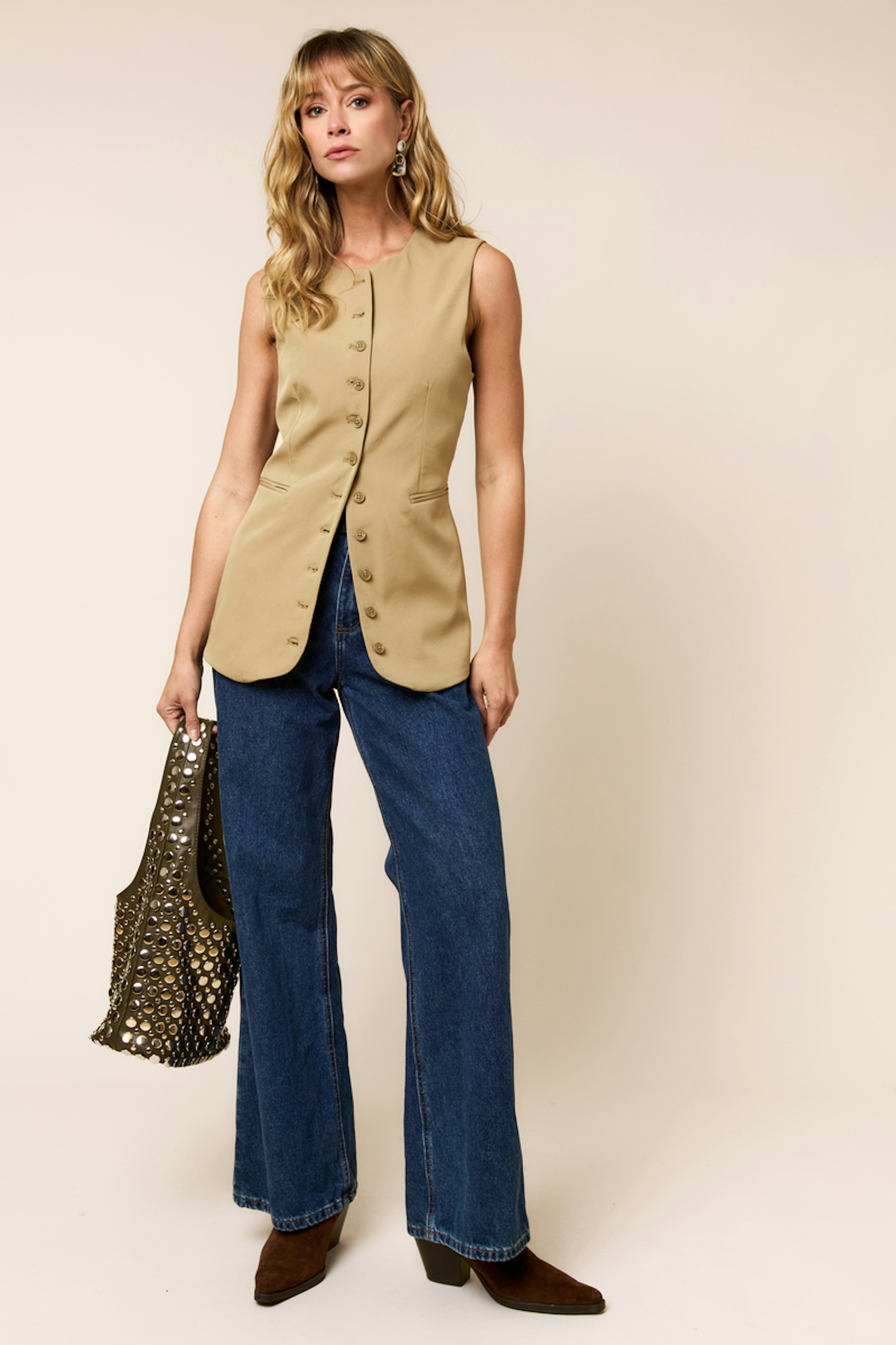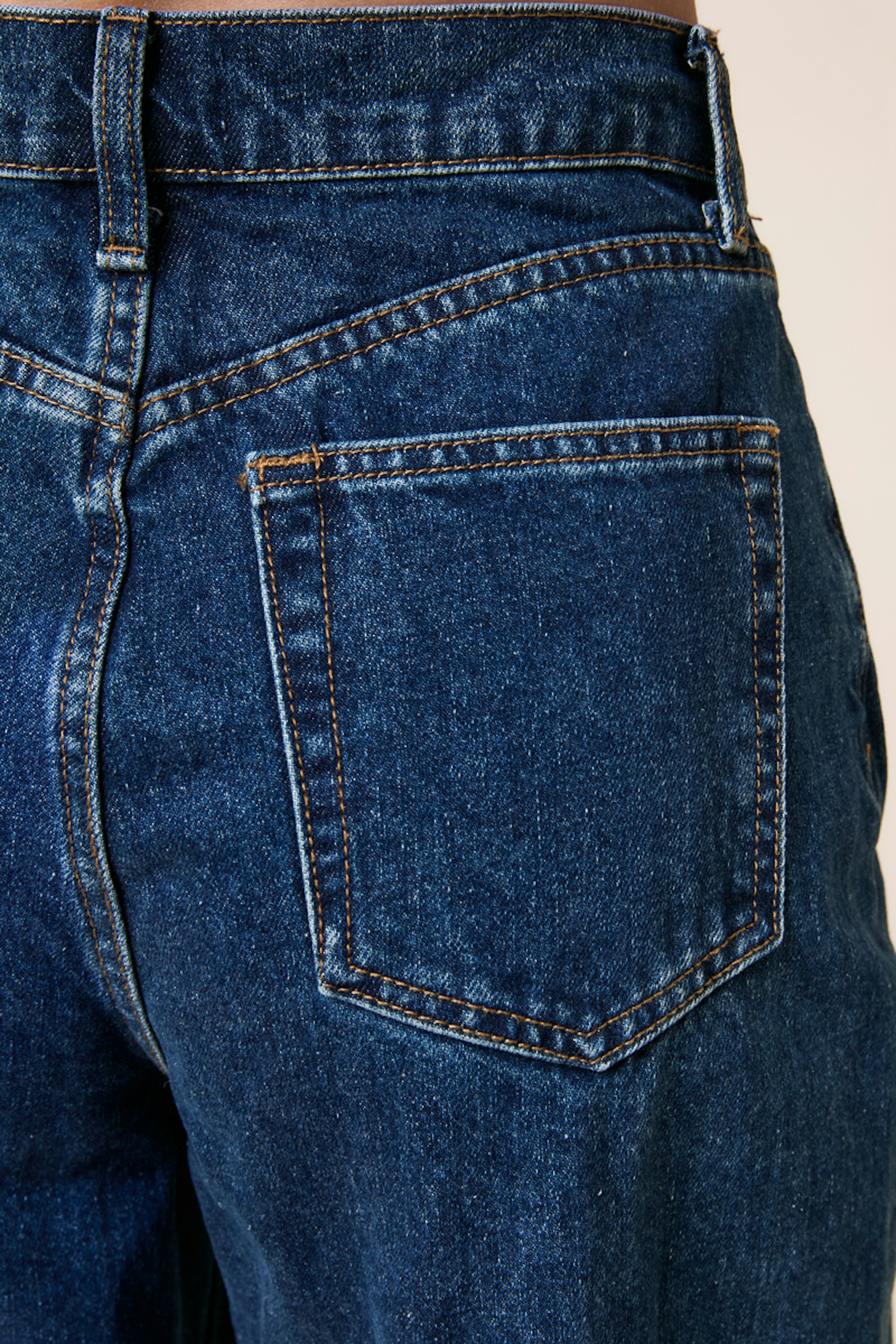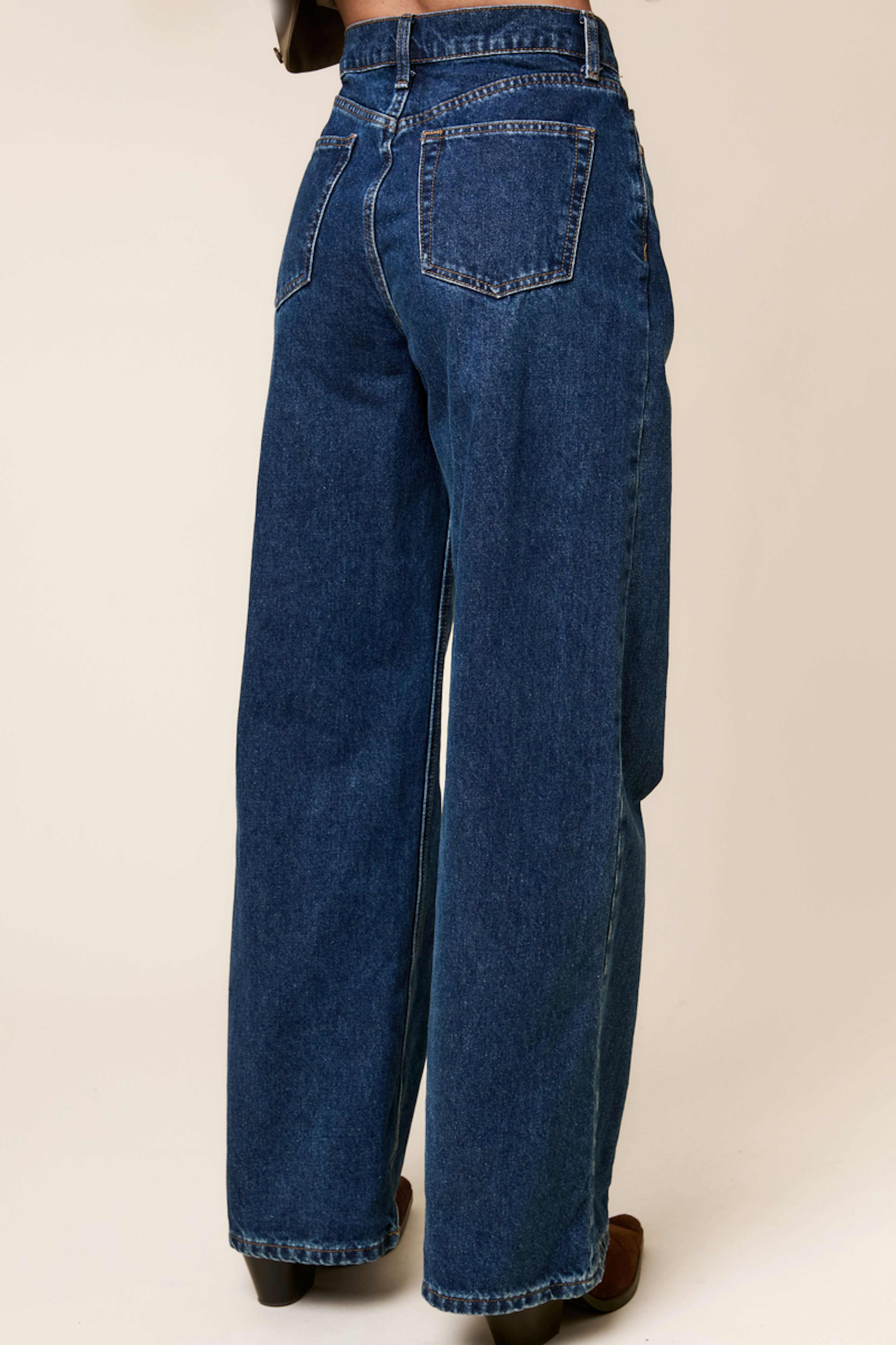 Associez ce jean à une chemise blanche fluide et des baskets pour un look chic et décontracté. • Jean coupe large • Taille haute • Jambes amples • Confort extensible • Teinte denim classique