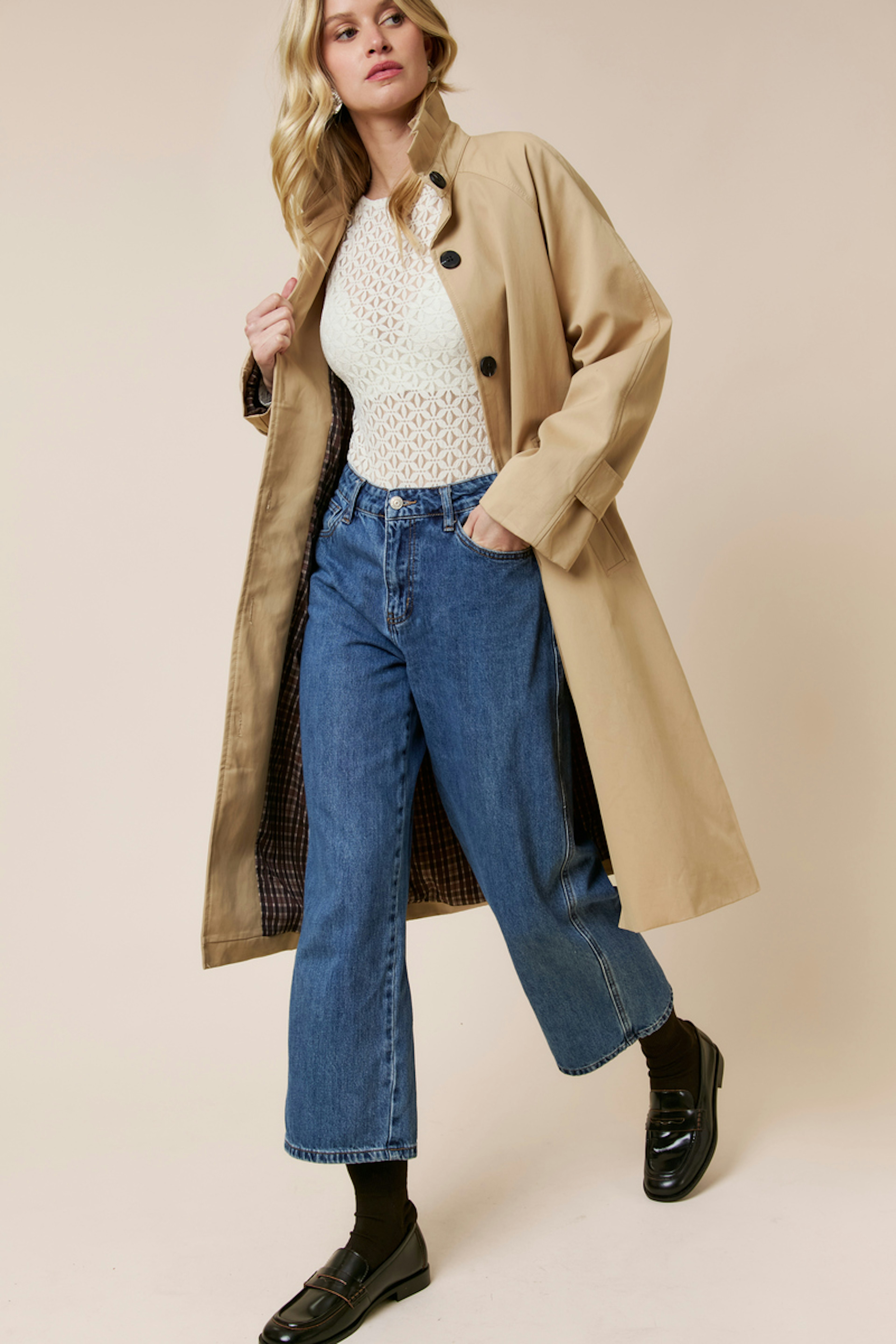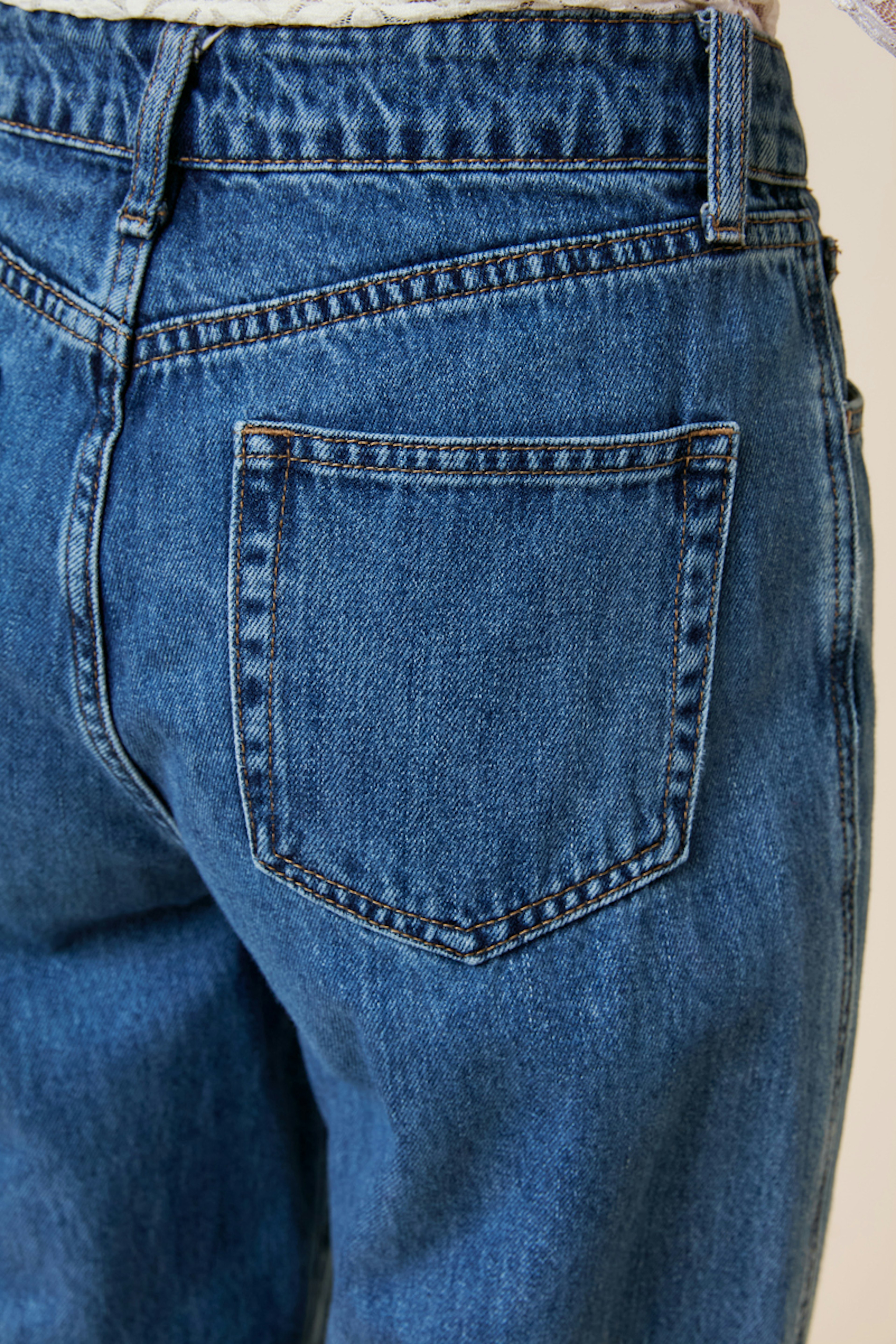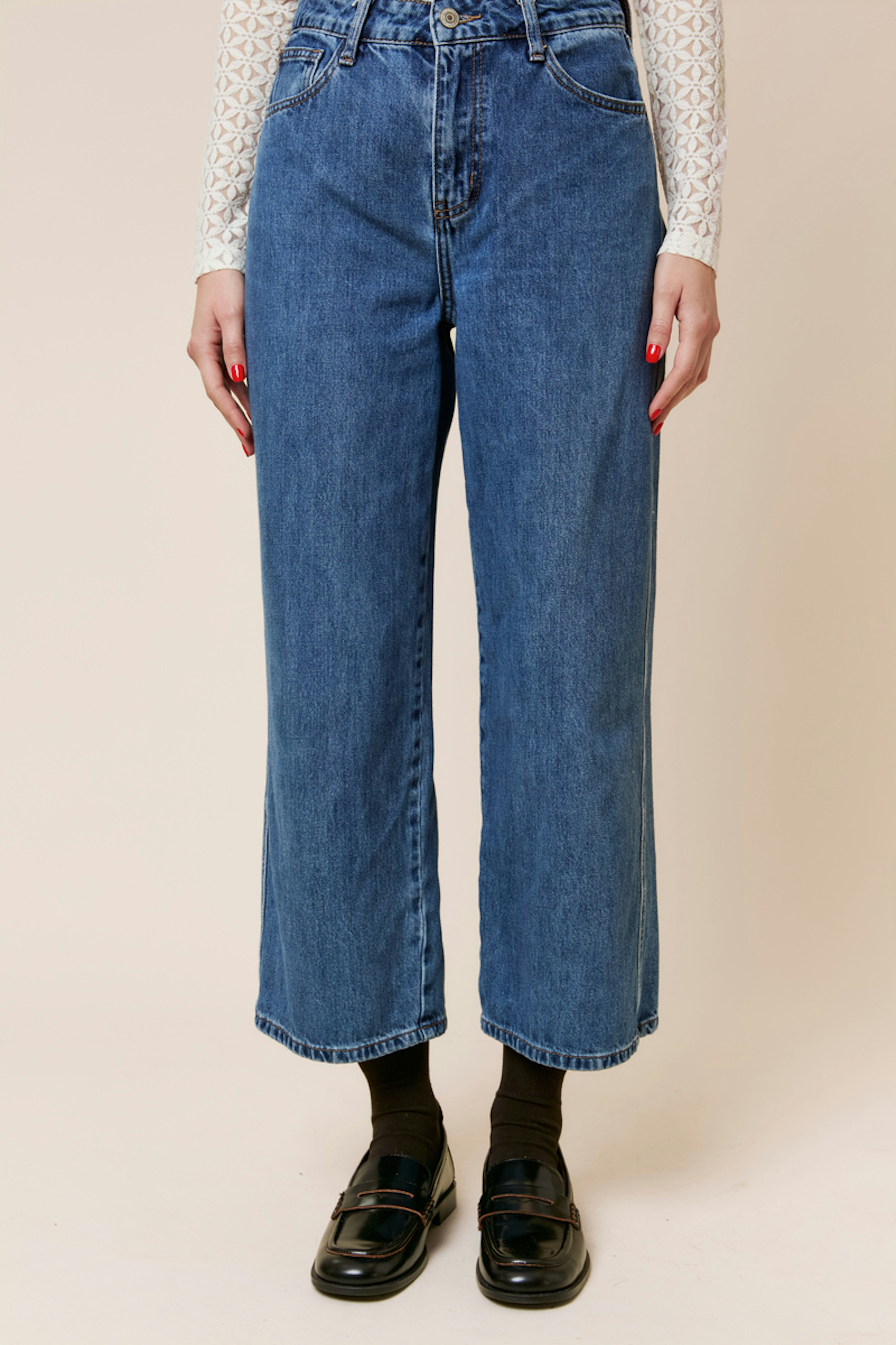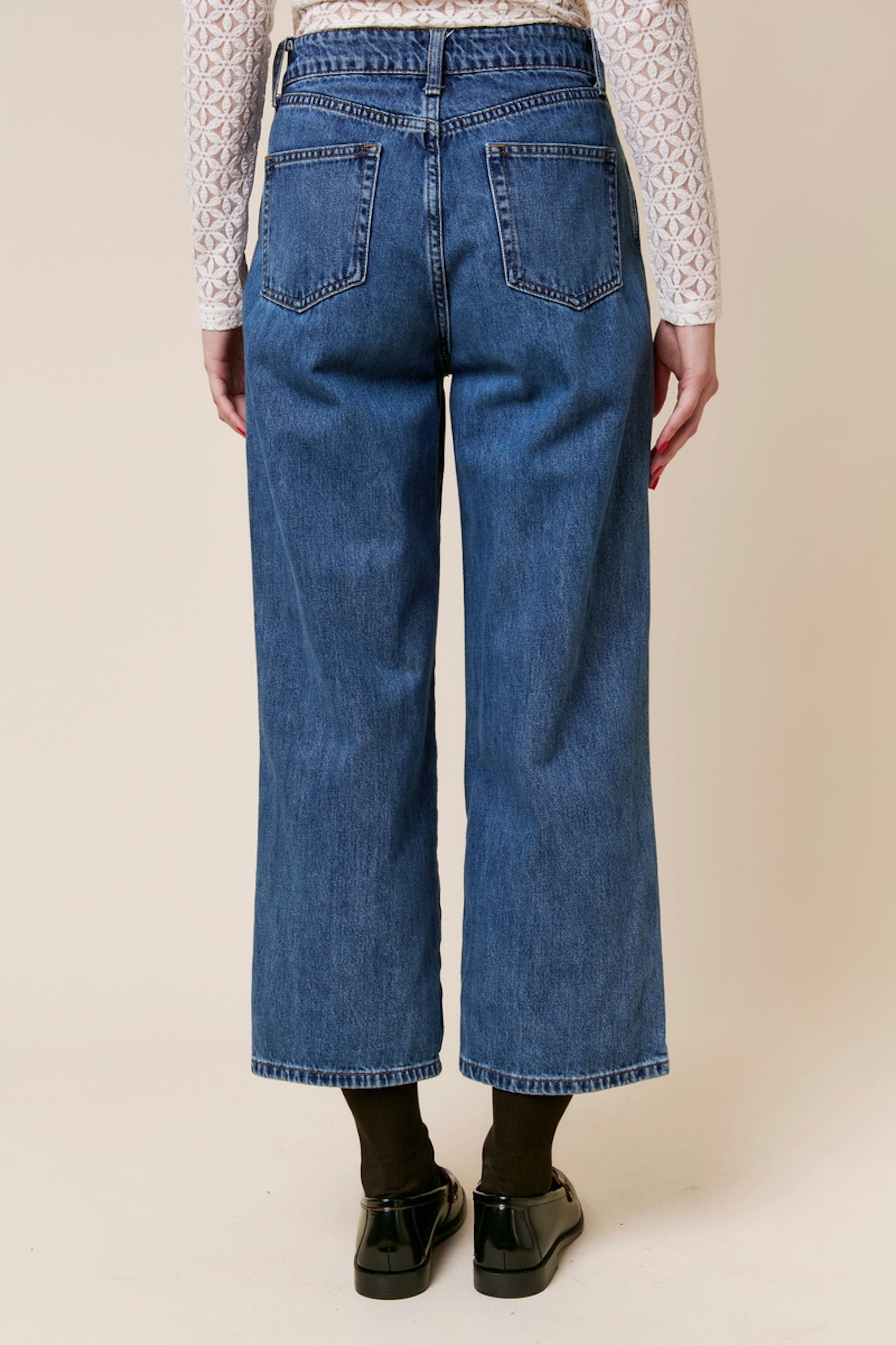 • Jean Coupe Wide (évasé des hanches à la cheville) • Taille haute • 5 poches • Fermeture par zip et boutons • Passants pour ceinture