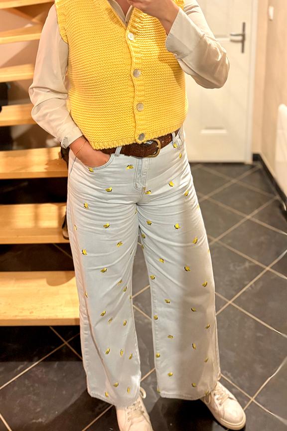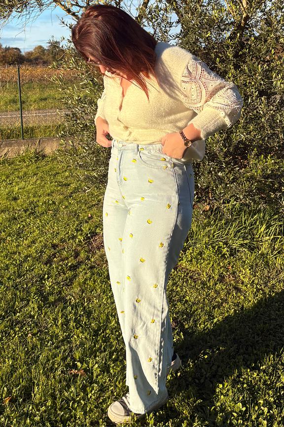 Associez ce jean à un haut uni et des sandales plates pour un look estival rafraîchissant. • Jean en coton • Taille haute flatteuse • Coupe large confortable • Longueur entière • Motif citron