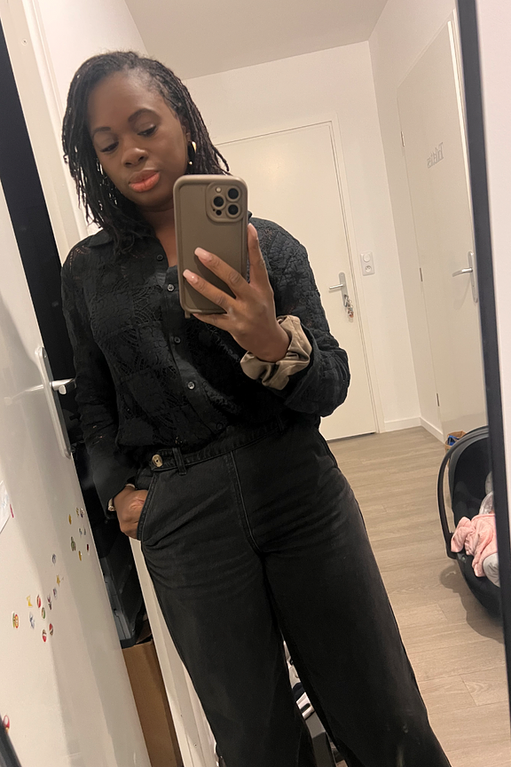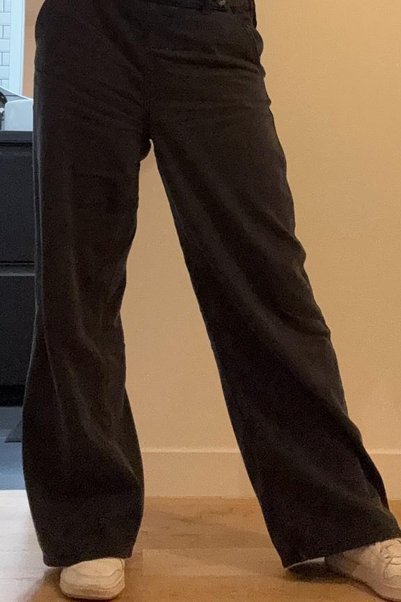 Associez ce jean avec une blouse en soie et des bottes à talons pour un look chic et décontracté, parfait pour toute occasion! • Jean coupe large • Taille haute flatteuse • Longueur classique • Jambes amples • Couleur noir élégante