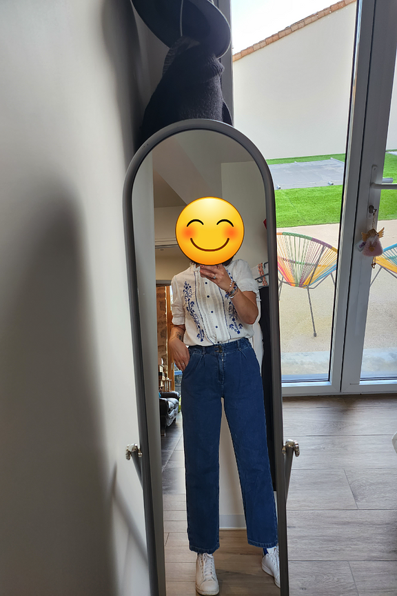 “J'ai suivi les avis et pris une taille au dessus de ma taille habituelle, et je ne peux quand-même pas le porter tant la taille me serre ! Il rend un effet bouffant sous la ceinture qui marque toutes les formes. Malgré des photos vraiment très attirantes, ce jean n'est absolument pas pensé si vous avez un peu de ventre, de fesses ou même de hanches. Prévoir 2 tailles au dessus le cas échéant.”