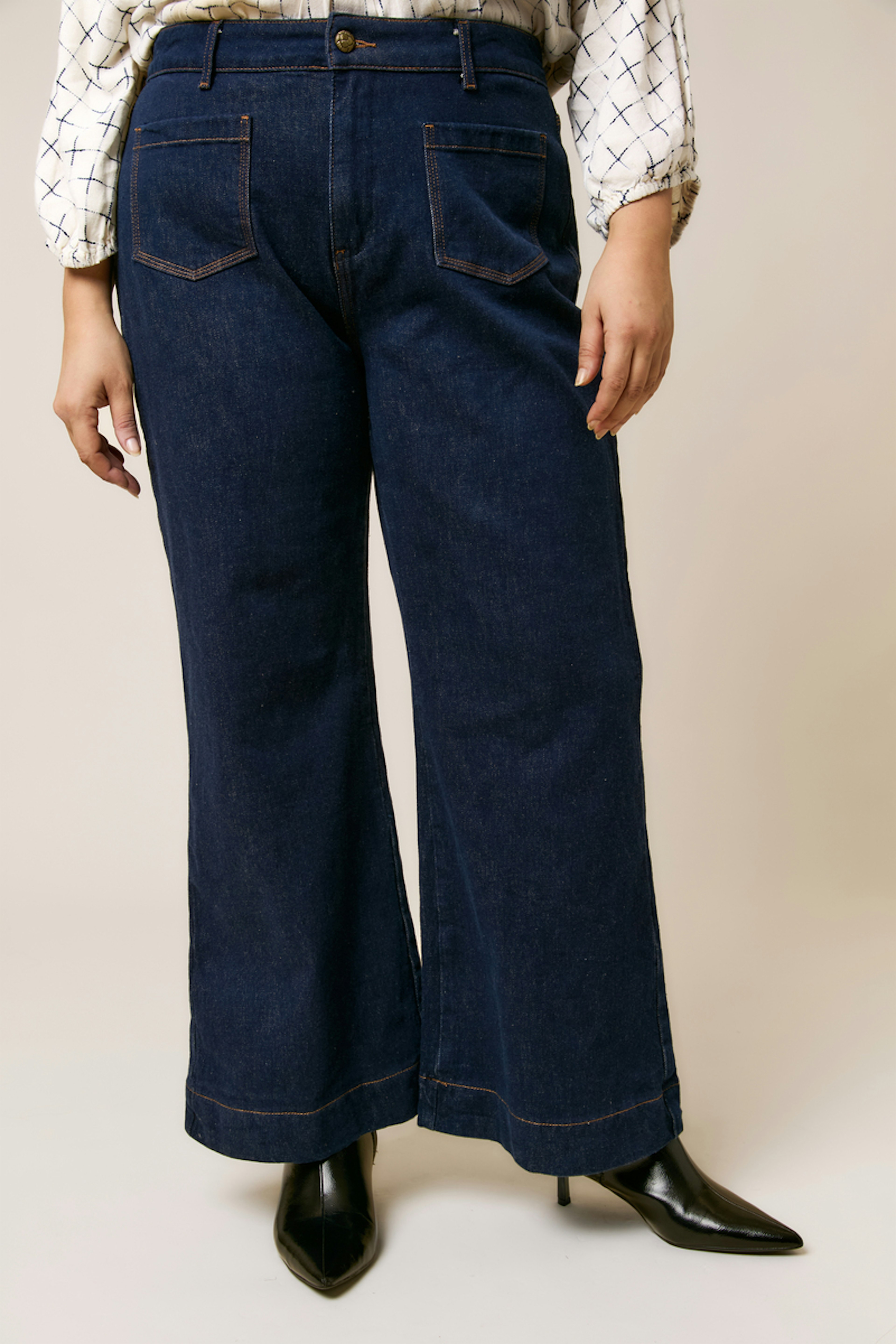 Pour un look chic sans effort, associez ce jean avec un chemisier fluide et des bottines en cuir. Ajoutez des accessoires dorés pour une touche de sophistication. • Jeans coupe droite • Taille mi-haute • Jambe légèrement évasée • Longueur aux chevilles • Délavage bleu intemporel
