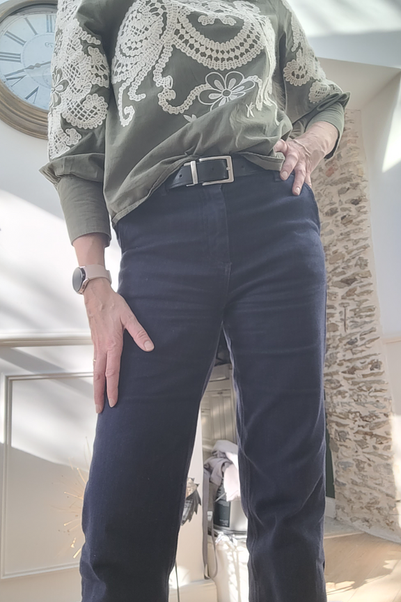 Associez ce jean avec une blouse légère et des bottines pour un style chic et décontracté, parfait pour toutes les saisons. • Jean coupe droite • Taille classique • Jambes légèrement évasées • Délavage brut • Confort stretch léger