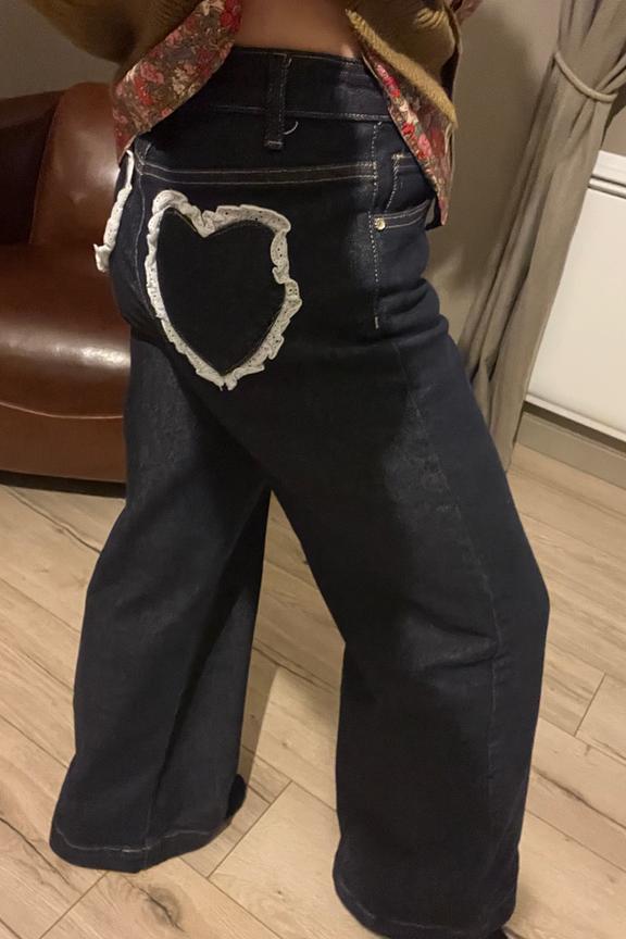 Pour un look ludique et séduisant, associez ce jean avec un chemisier en dentelle légère et des mocassins noirs. Idéal en toutes saisons. • Jean évasé • Taille mi-haute • Jambe large • Longueur standard • Poches arrière en forme de cœur