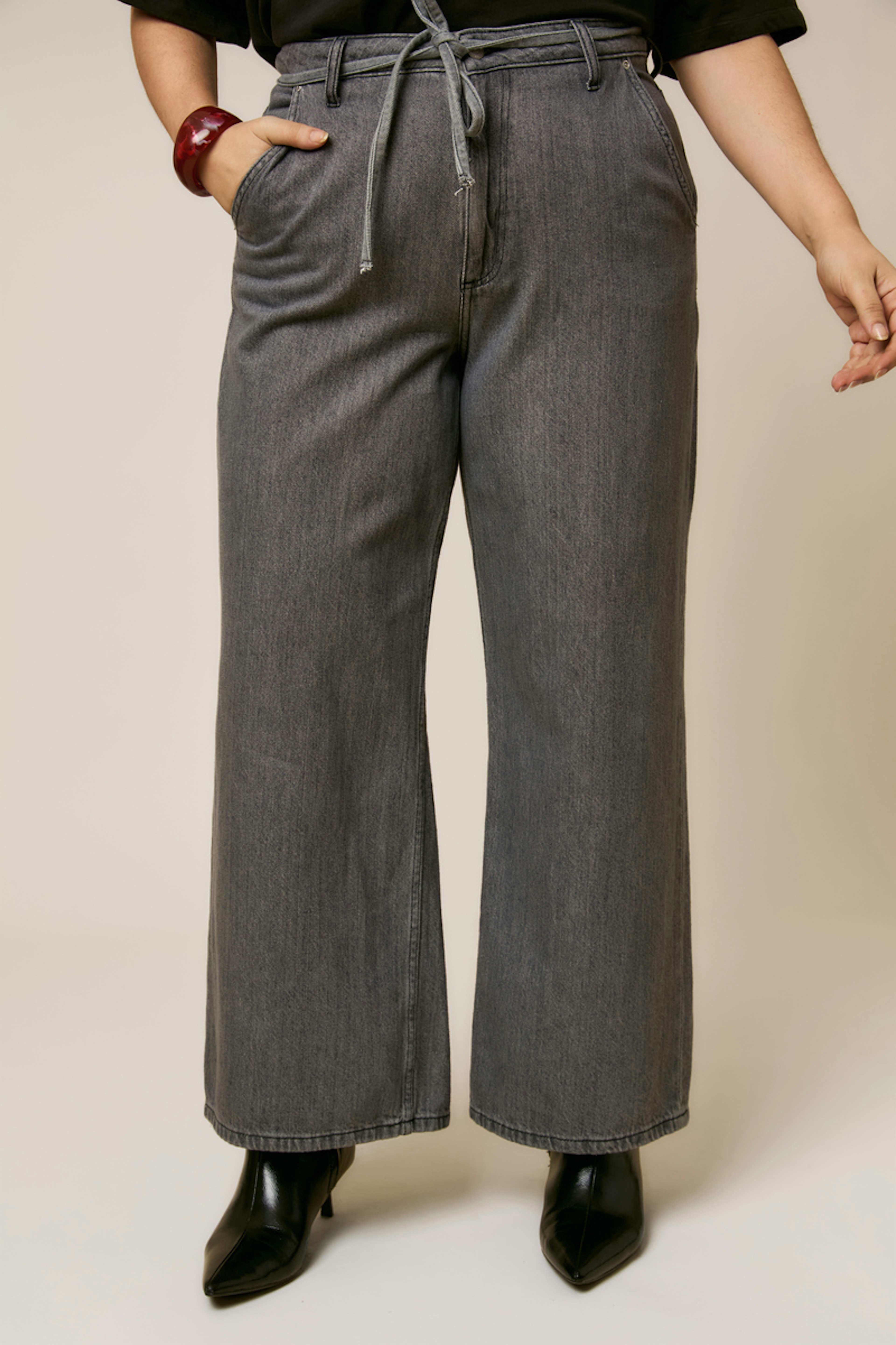 Ajoutez un top coloré et des bottines pour un style chic. • Jean wide leg en coton • Coupe large et décontractée • Taille élastiquée avec cordon • Poches latérales pratiques • Coloris gris polyvalent