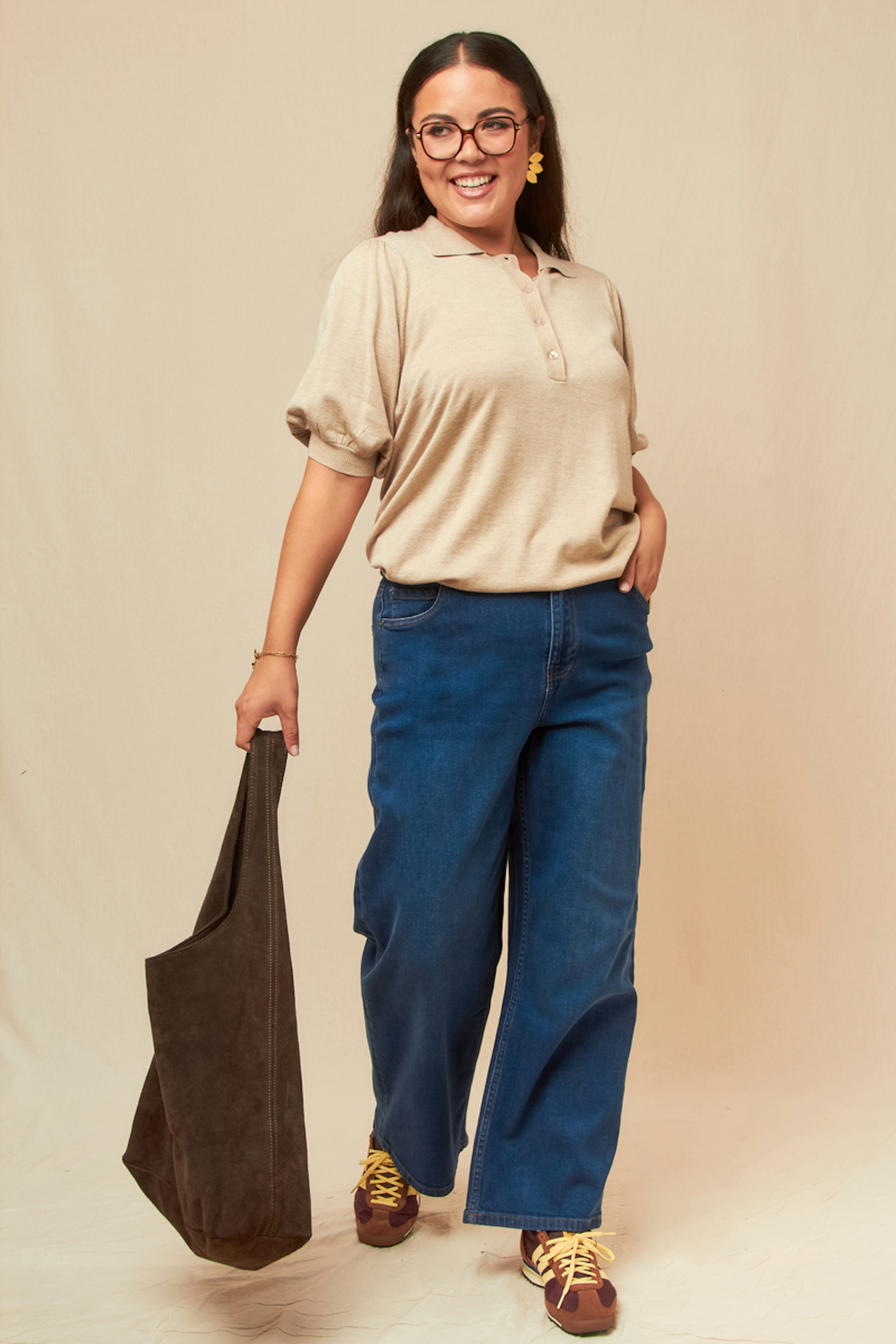 Portez ce jean bleu avec un top blanc en lin et des sandales à lanières pour une allure décontractée. • Jean coupe large • Taille haute • Jambe ample • Longueur cheville • Délavage bleu classique
