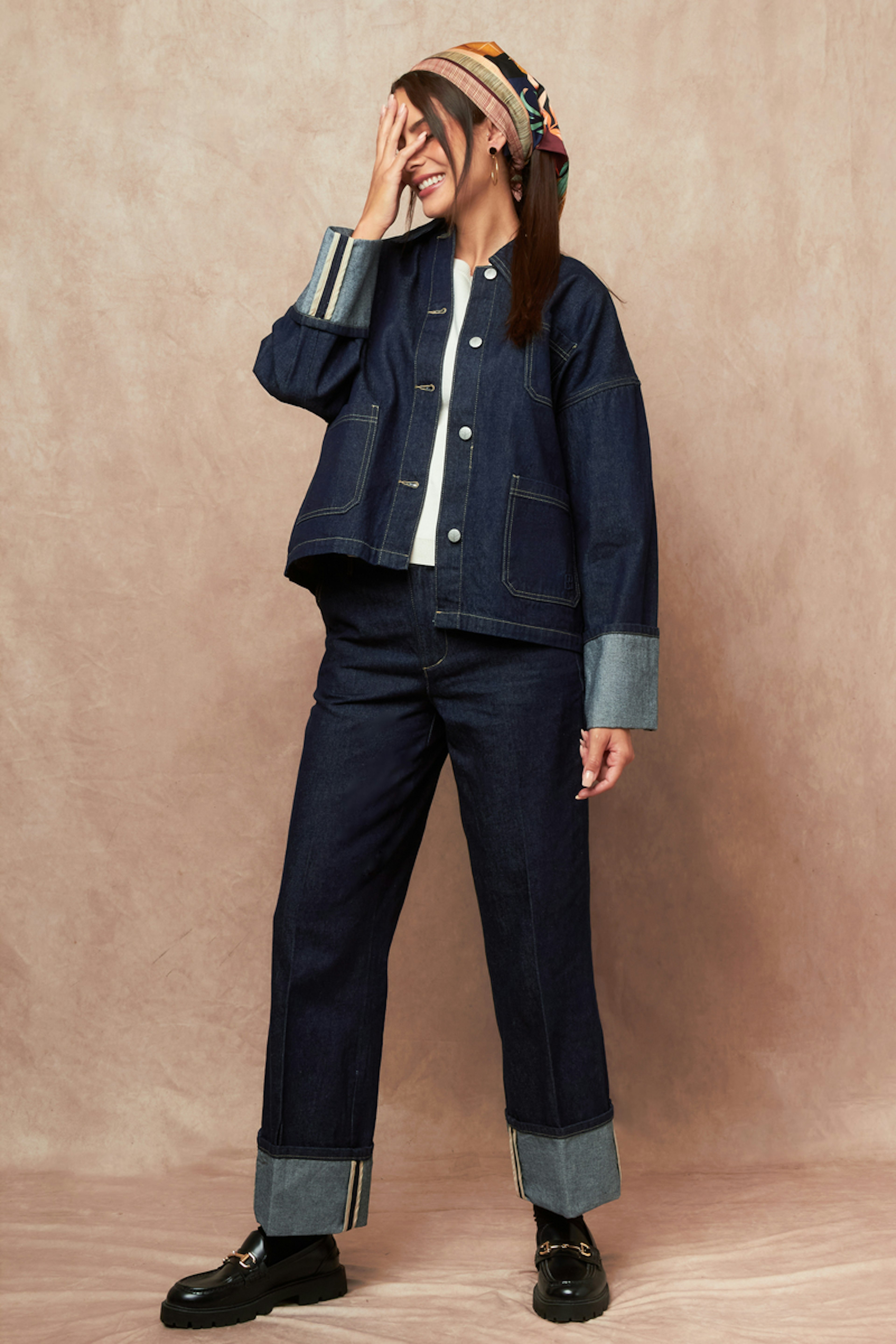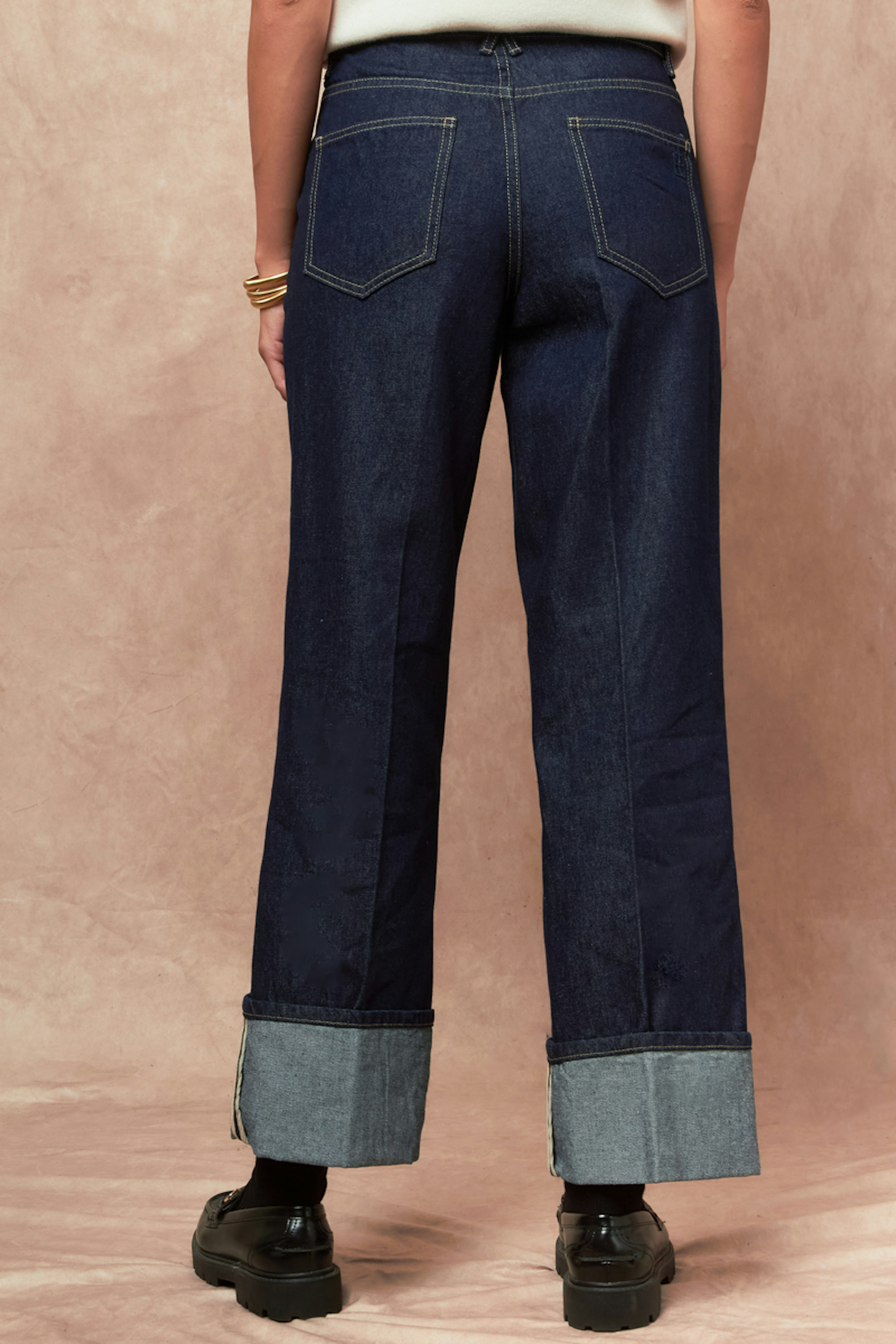 Complétez ce look avec un t-shirt blanc et des bottines pour un style à la fois chic et décontracté. Parfait pour toutes les saisons. • Jean coupe large • Coupe ample et décontractée • Revers tendance en bas • Couleur bleu indigo • 100% coton noble