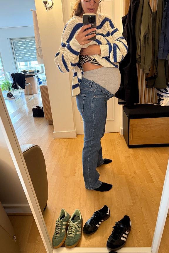 “Très bien coupé. Légèrement ajusté pour un ventre de 8 mois mais complètement portable.”
