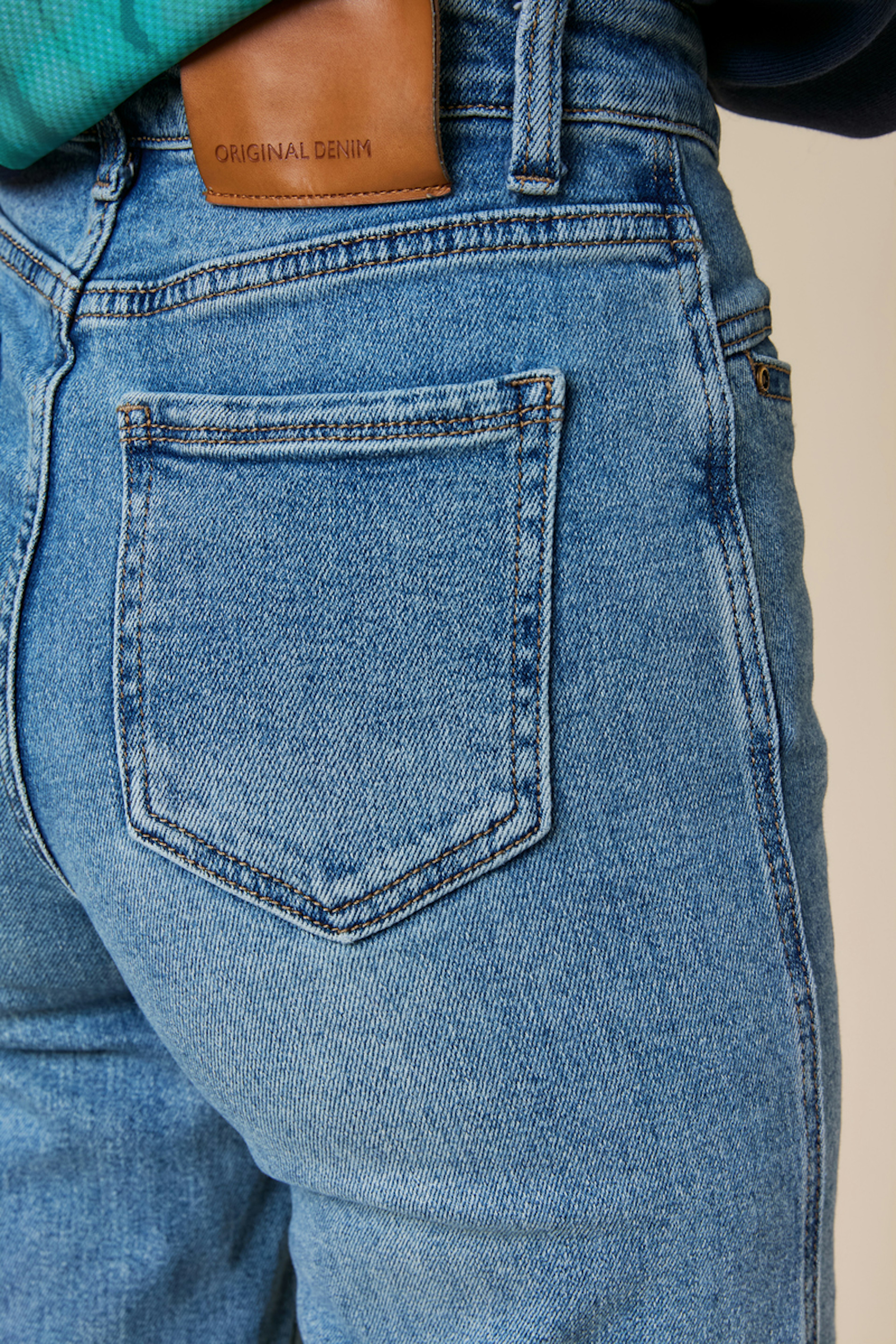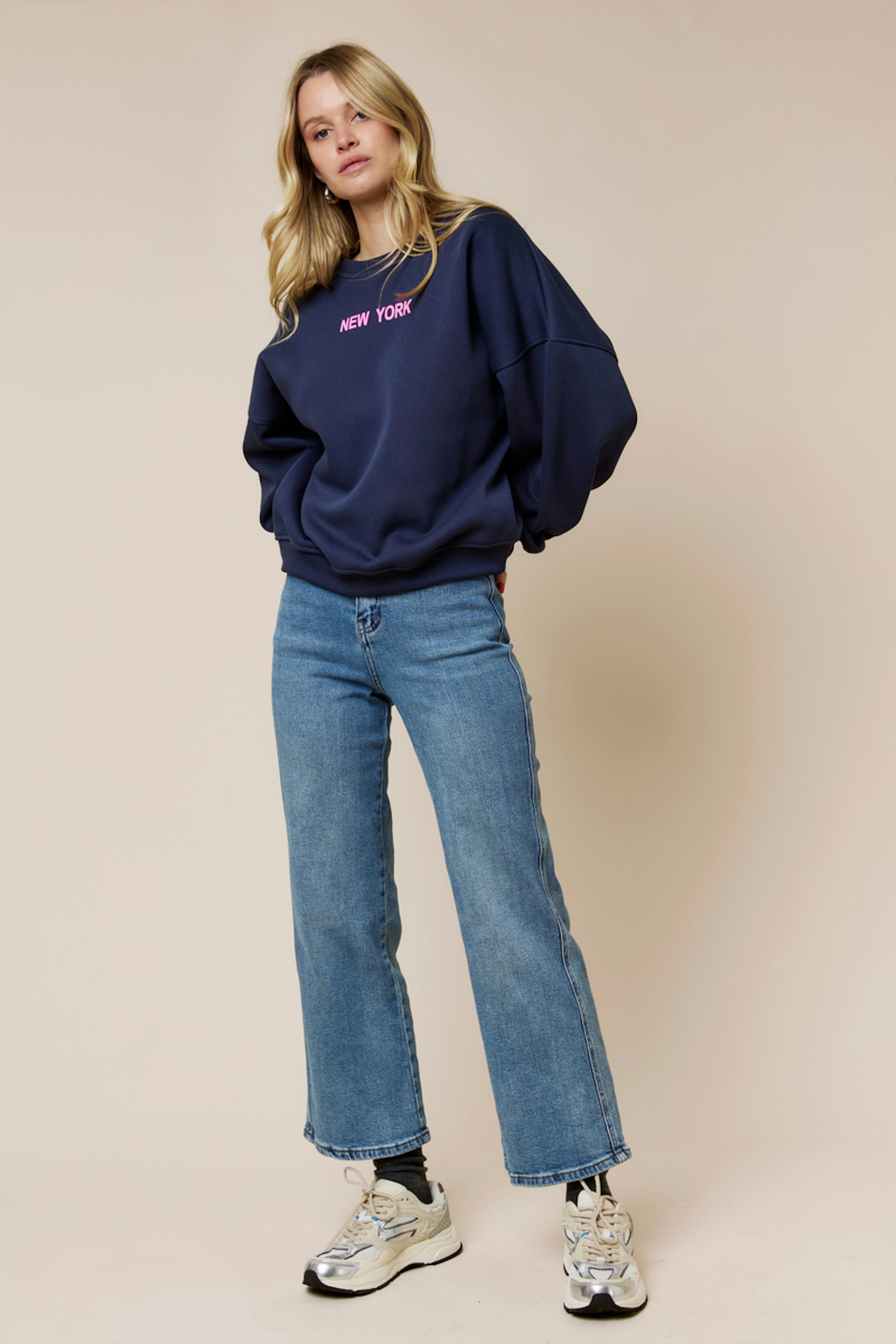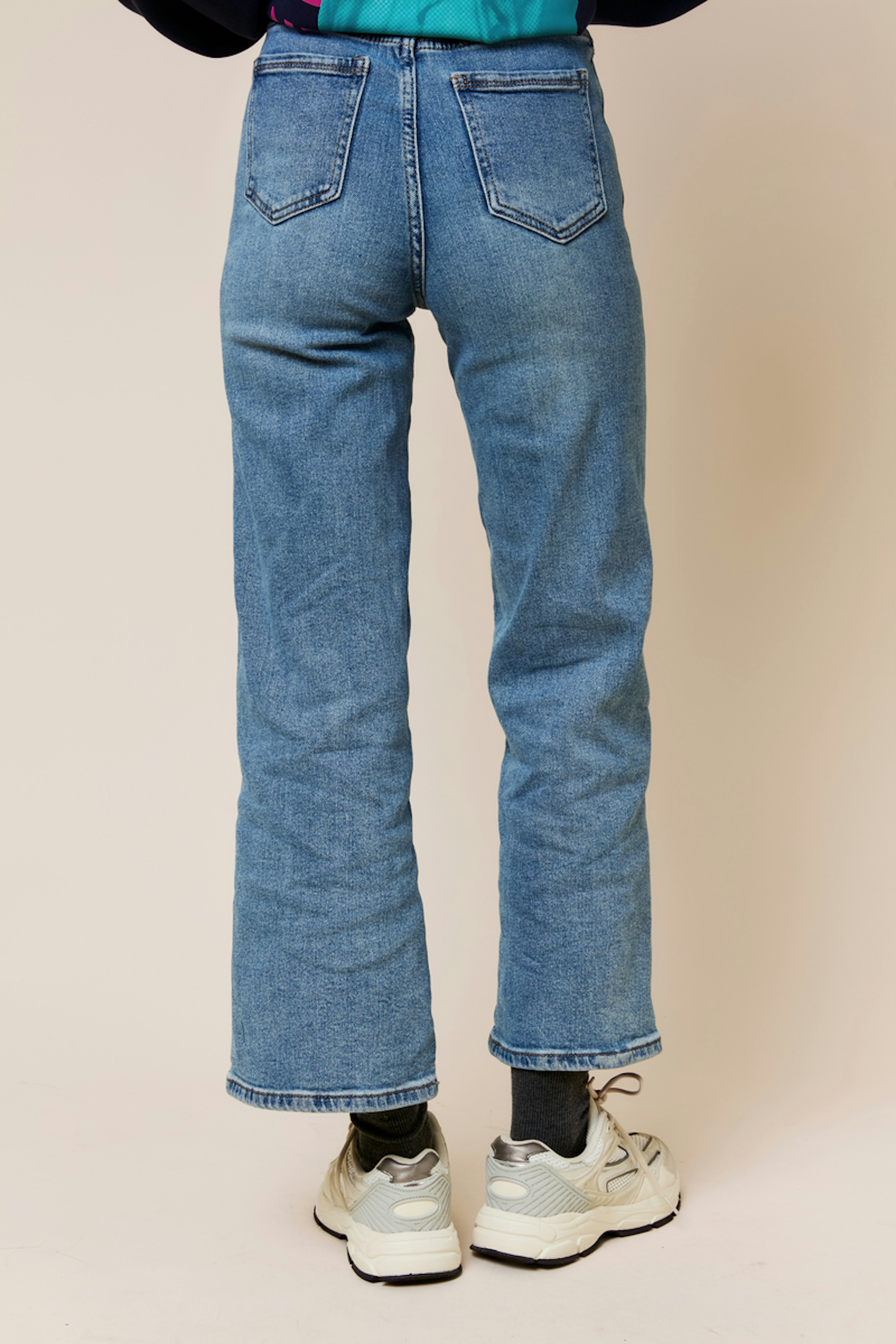 Associez ce jean avec un pull cosy et des baskets pour un look décontracté. Idéal pour toutes les saisons. • Jean coupe large • Taille haute flatteuse • Jambes amples et fluides • Confort et style décontracté • Délavage bleu classique