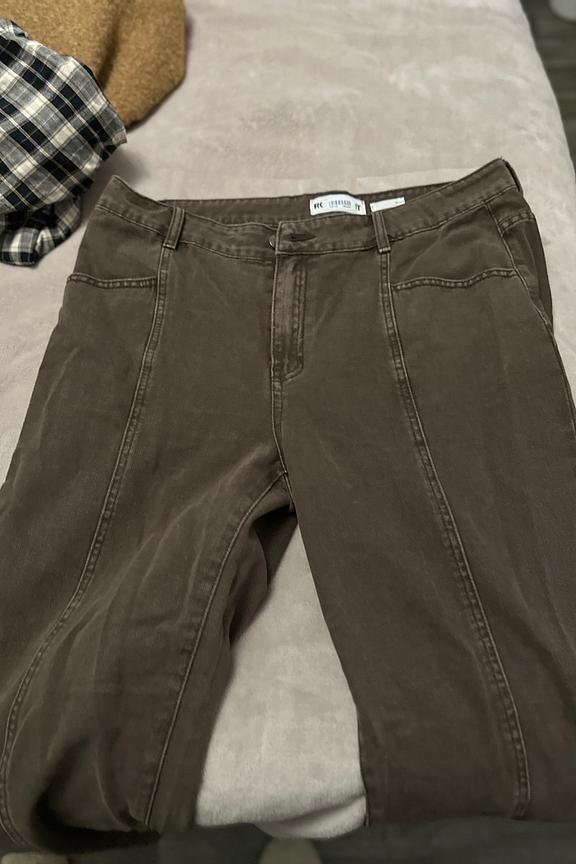 “Beau pantalon, un peu court qd on est grande (je l’ai donc porté retroussé comme la mannequin) et je trouve le 38 un peu grand. Confortable”