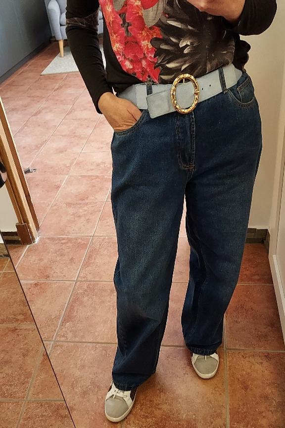 Pour un look chic et décontracté, associez ce jean bleu à une blouse légère et des bottines en cuir. Parfait en toute saison. • Jean baggy à coupe large • Taille haute • Jambes amples