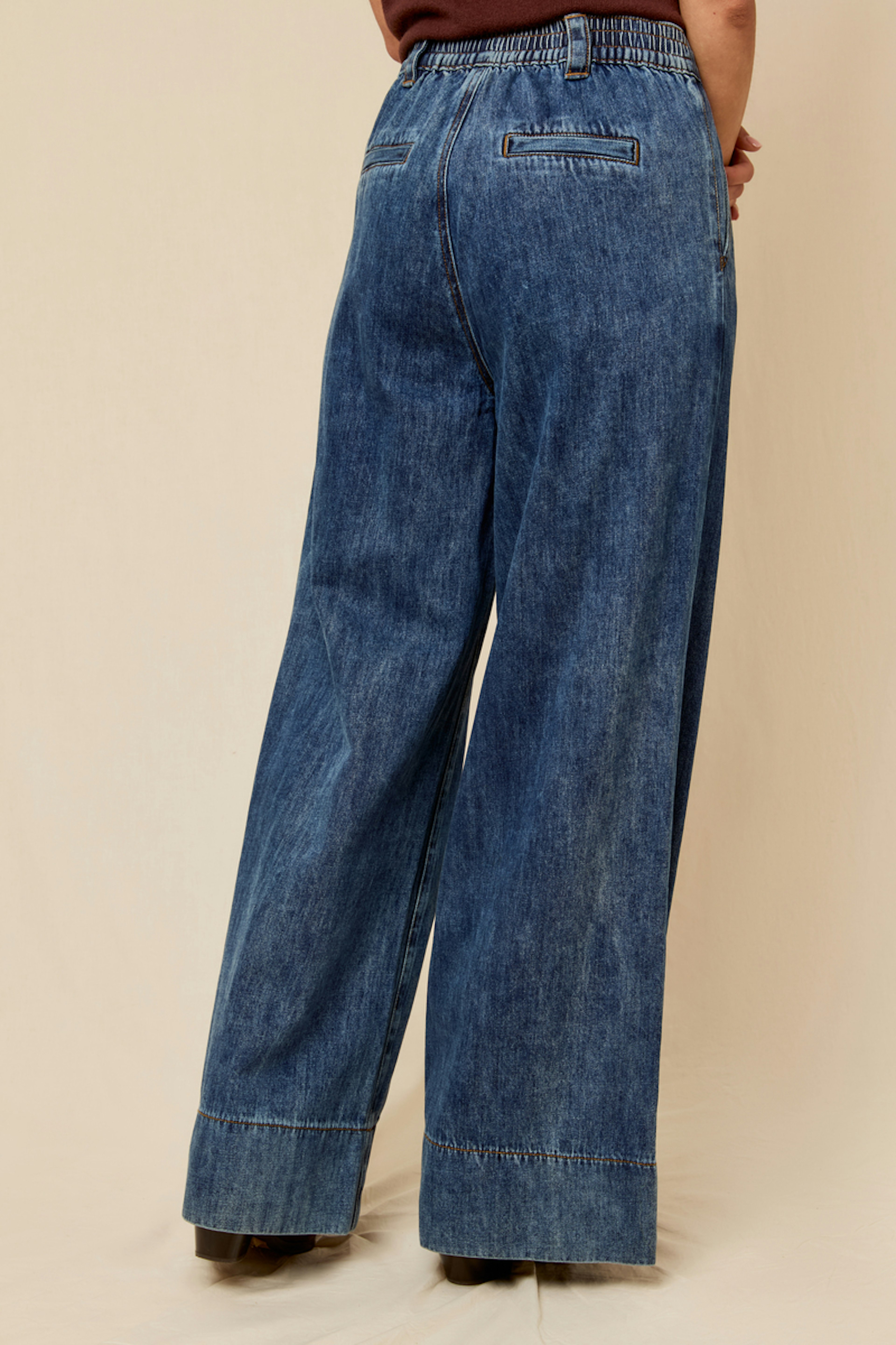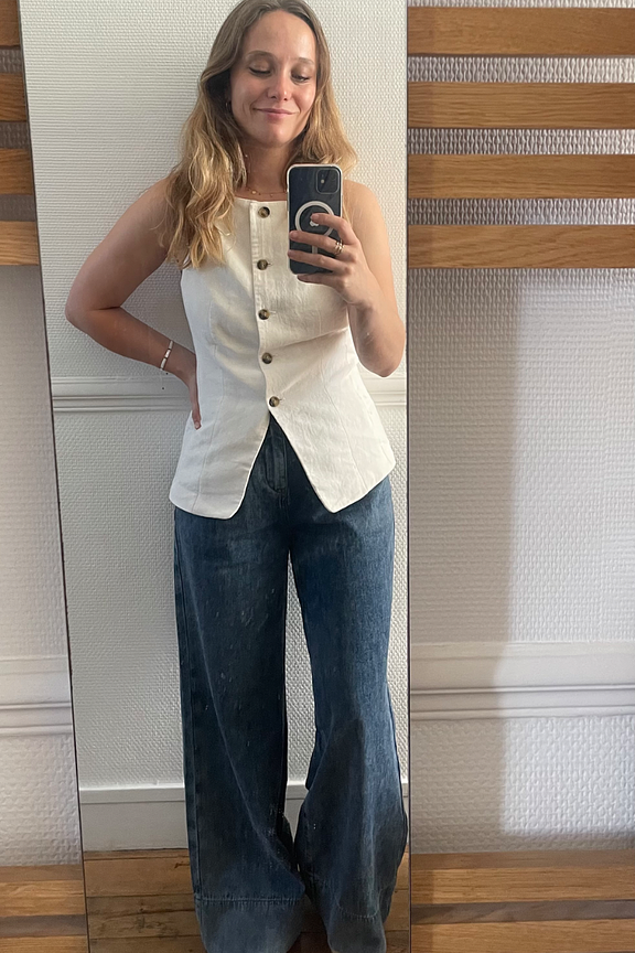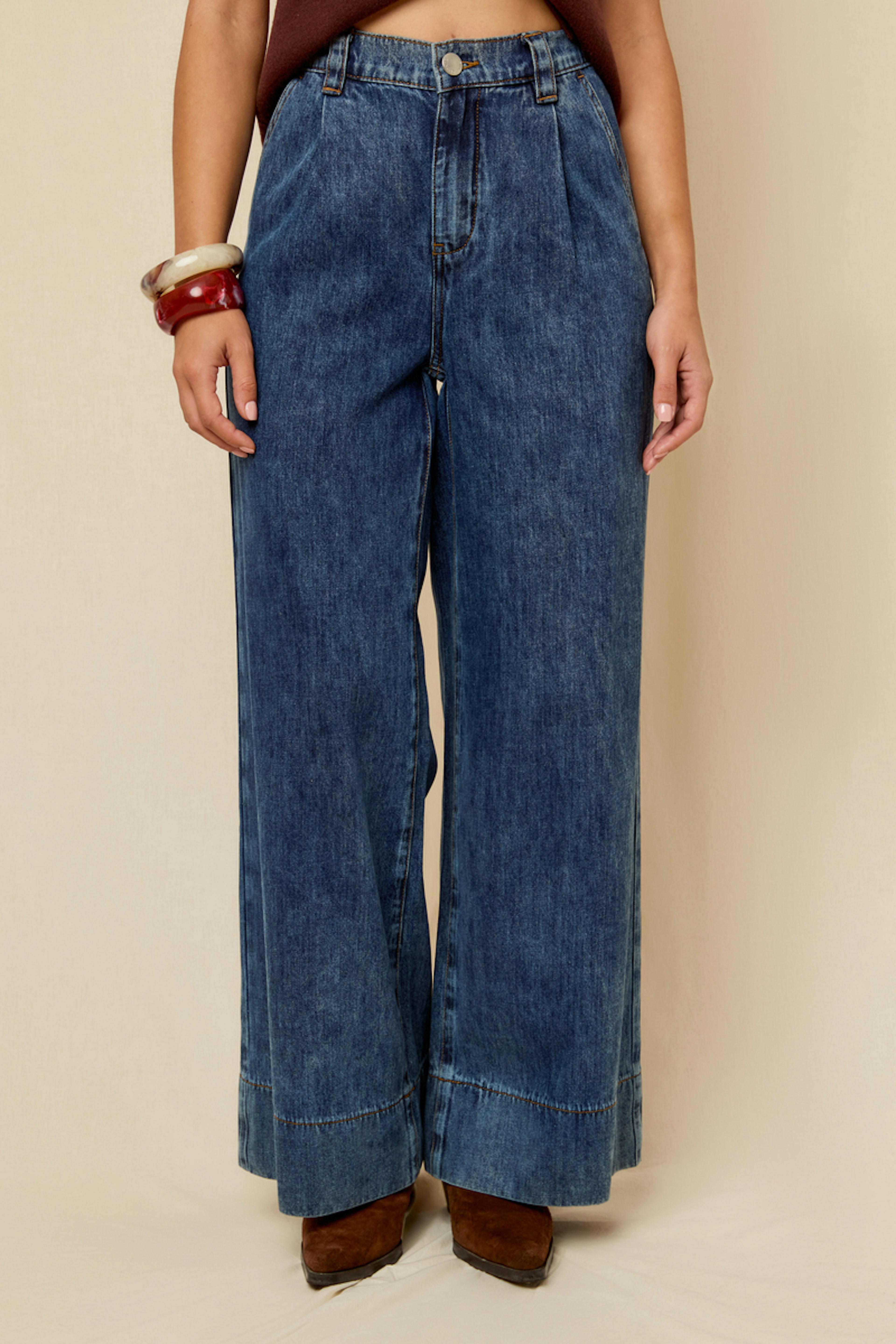 Associez-le à un chemisier fluide et des bottes à talons pour une allure élégante et tendance. • Jean coupe large • Taille haute flatteuse • Décontracté et confortable • Longueur ample • Détail couture contrastée