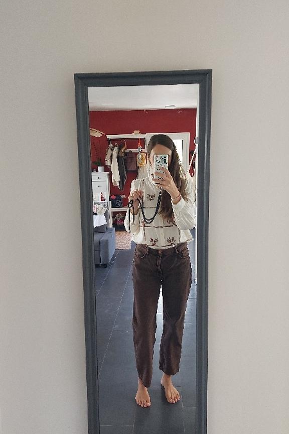 Ce jean marron Samsøe & Samsøe est parfait pour flâner en ville lors d'un doux après-midi printanier. Associez-le à un top fluide blanc et des mocassins pour un look sans effort ! • Jean en coton biologique et recyclé • Taille mi-haute • Coupe ajustée • Braguette boutonnée et zippée • Délavage marron et noir