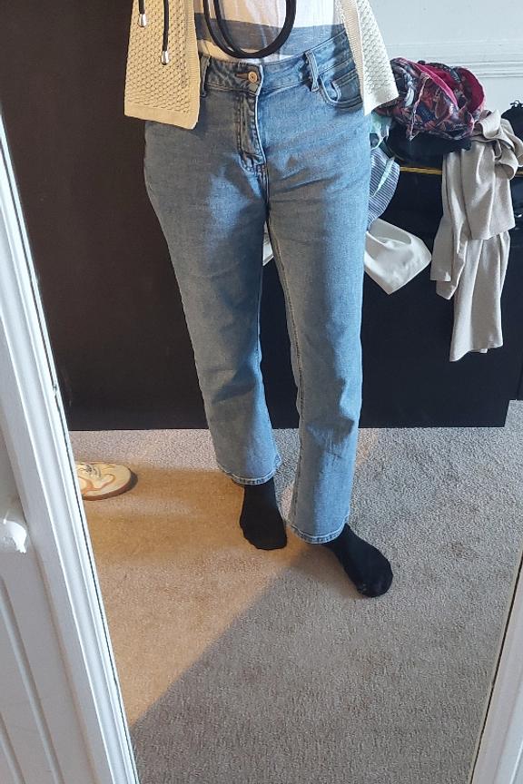 Associez ce jean droit avec un pull coloré ou une blouse légère pour un look casual chic. Idéal en mi-saison pour ses coupes confortables. • Jean droit • Taille haute • Passants pour ceinture • 5 poches • Fermeture par zip et bouton