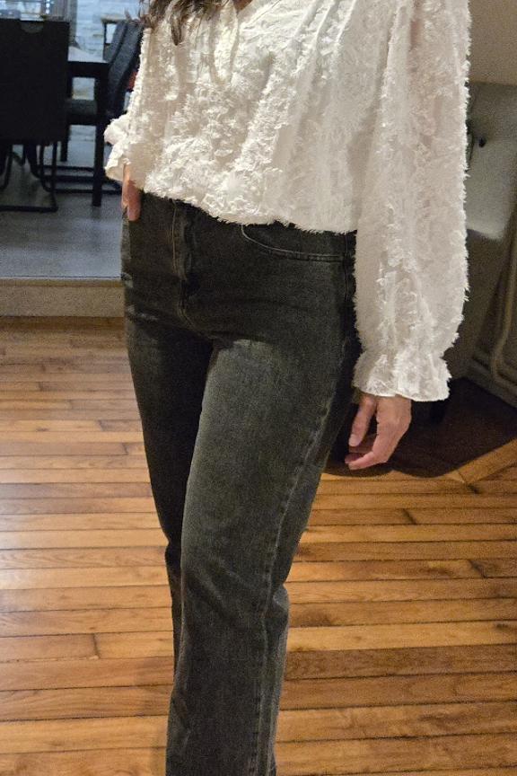 Le jeans Solange est un jean coupe droite sur toute la jambe, c'est ร dire qu'il va avoir la mรชme largeur au niveau de la cuisse comme au niveau de la cheville. โข Jean coupe droite en coton โข Taille haute รฉpurรฉe โข 5 poches fonctionnelles