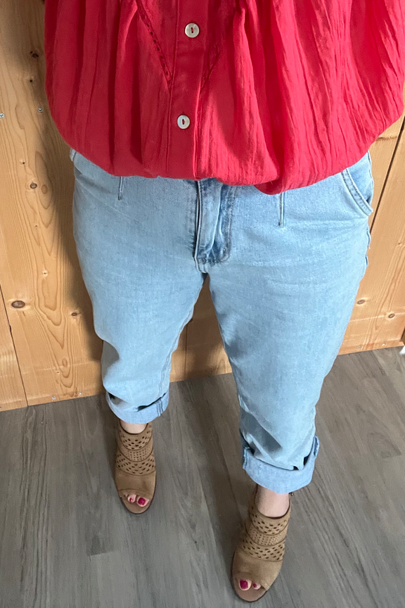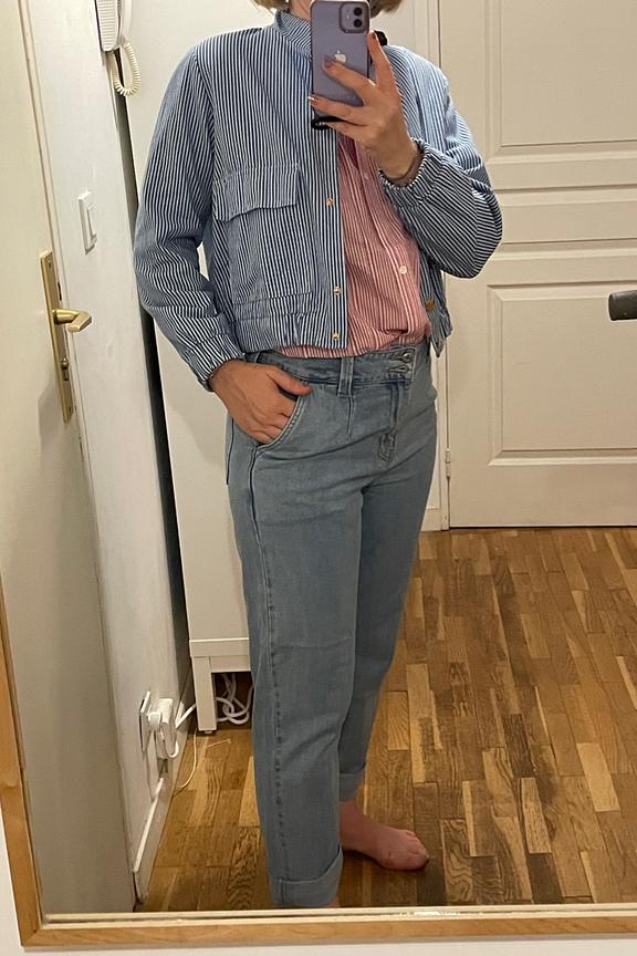 Ce jean mom fit est un incontournable de votre garde-robe, parfait pour un look décontracté et tendance. Associez-le à un top imprimé pour une touche audacieuse ou à un pull en cachemire pour une allure chic. • Jean mom fit • Taille haute • Fermeture par bouton et zip • Passants pour ceinture • 4 poches