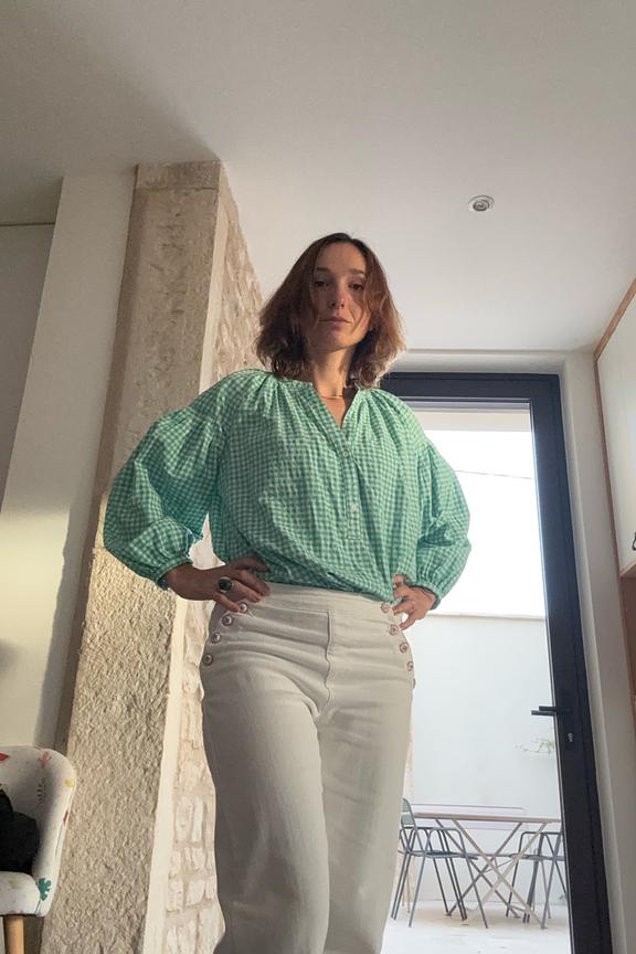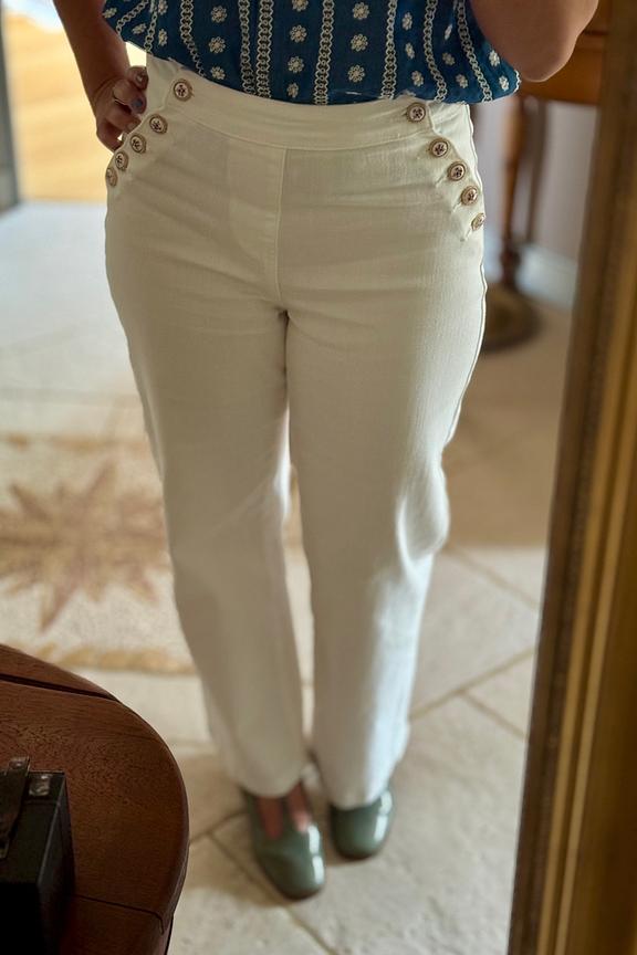 “Bonne longueur pour mon 1m65. Les boutons sur les hanches font que le pantalon ne comprime pas la taille.”