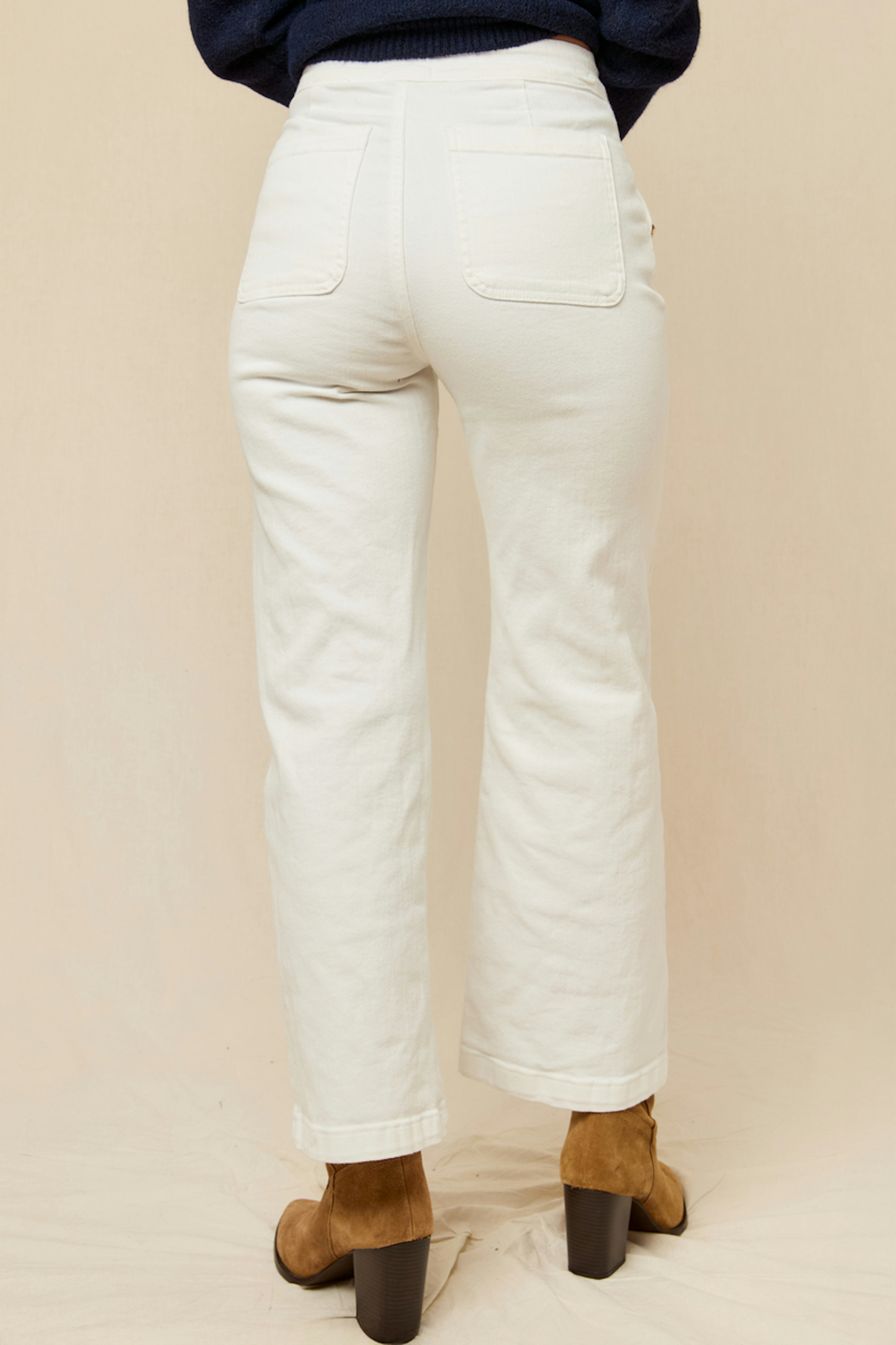 Optez pour une allure chic avec une blouse colorée et des mocassins. Idéal pour toutes les saisons. • Jean coupe droite • Taille haute flatteuse • Jambes larges et amples • Fermeture à boutons latéraux • Blanc éclatant