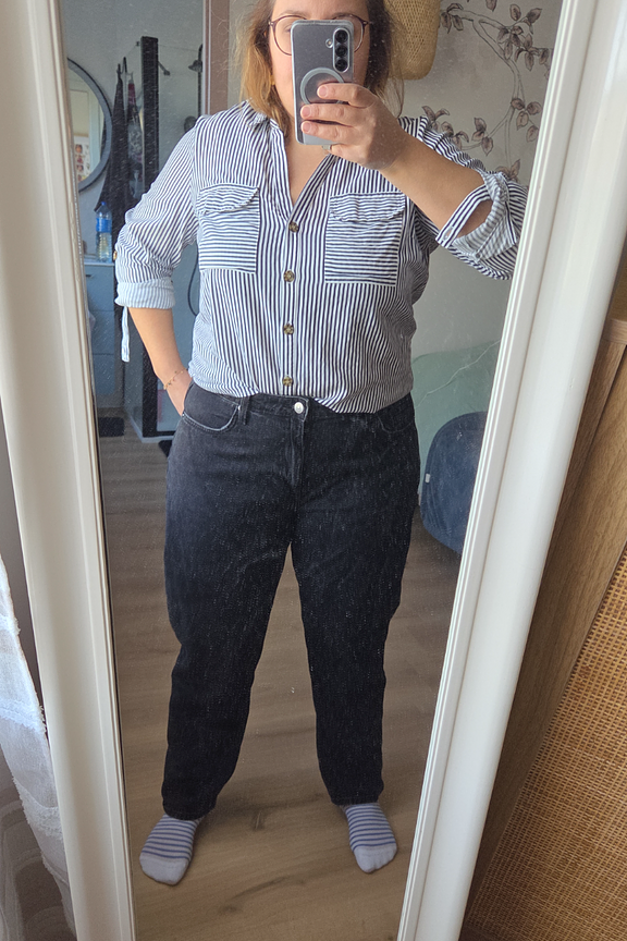 Associez ce jean avec un pull oversize et des baskets blanches pour un look casual chic. Parfait en toute saison. • Jean droit • Coupe ample • Taille haute • Longueur cheville • Coton noir