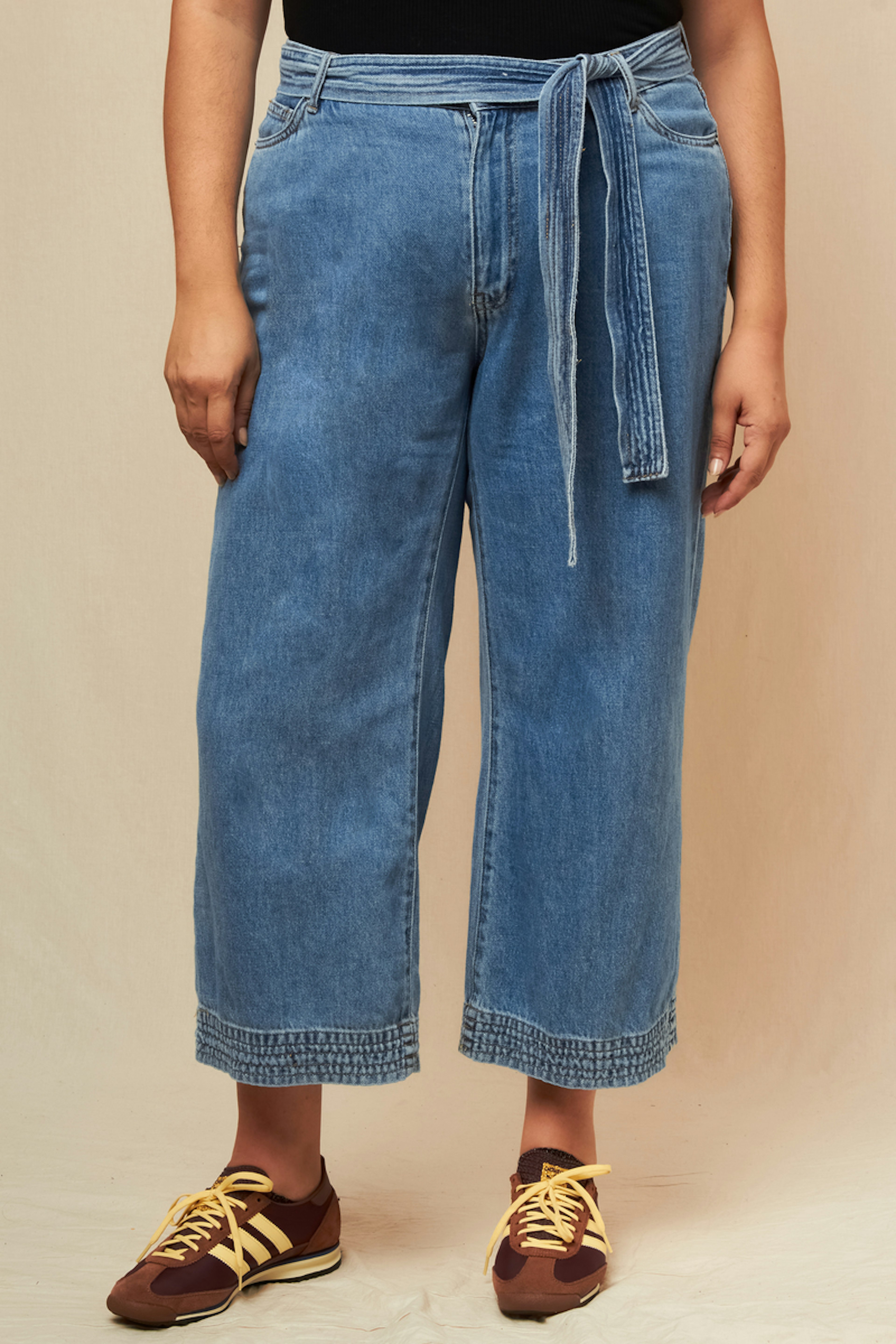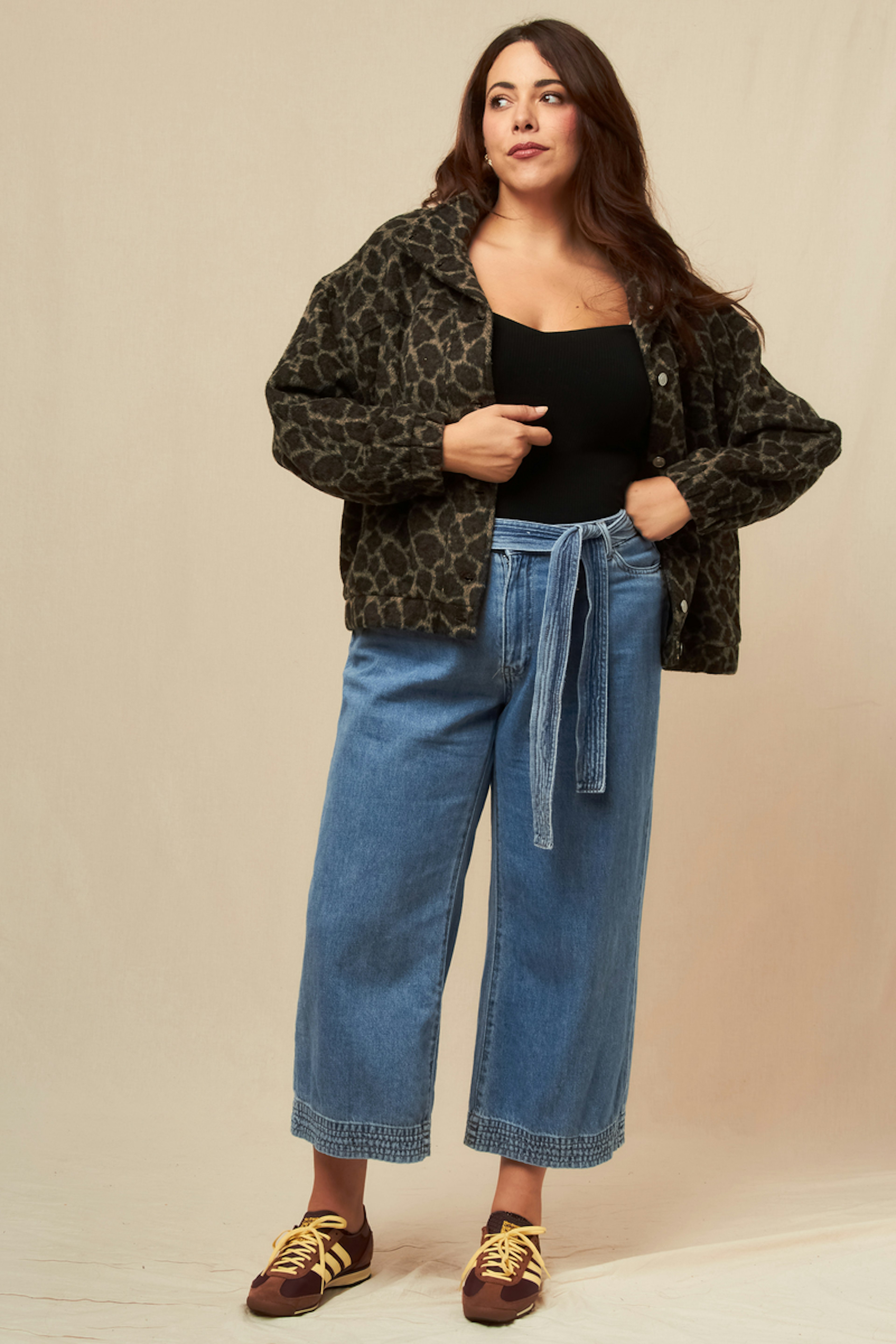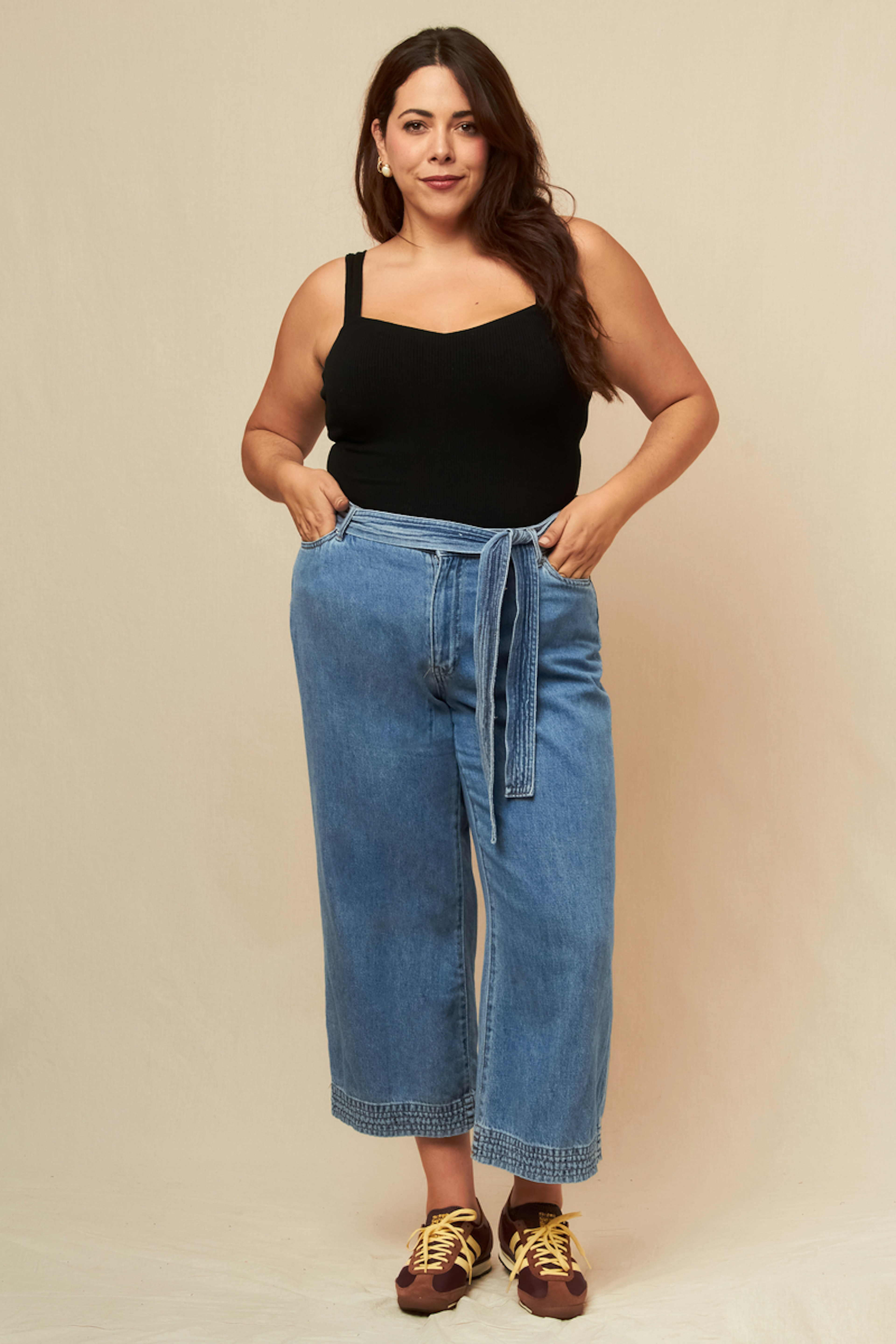 Portez ce jean à coupe large avec un haut ajusté pour un style équilibré ou une chemise oversize pour un look décontracté. Parfait en toute saison. • Jean à coupe large • Taille extra haute flatteuse • Longueur cropped au-dessus de la cheville • Fermeture boutons et glissière • Détails poches avant et arrière