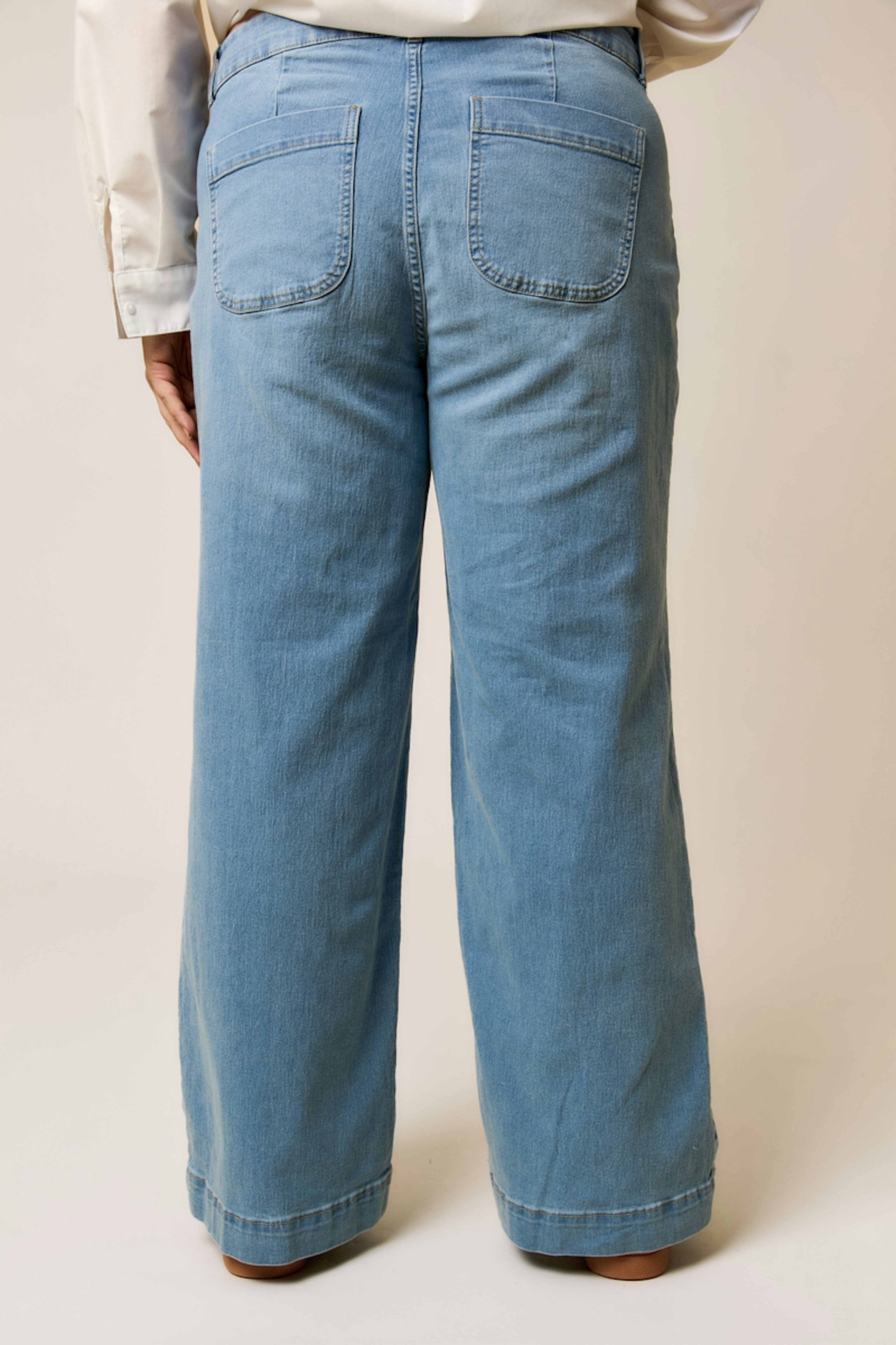 Portez ce jean large avec un haut ajusté pour un contraste élégant. Parfait pour exprimer votre style tout en restant à l’aise. • Jean à coupe large • Taille haute • Kick Flared Fit • Fermeture à boutons • Poches avant et arrière