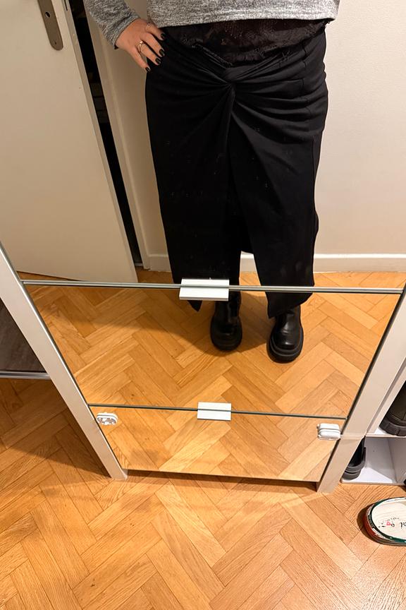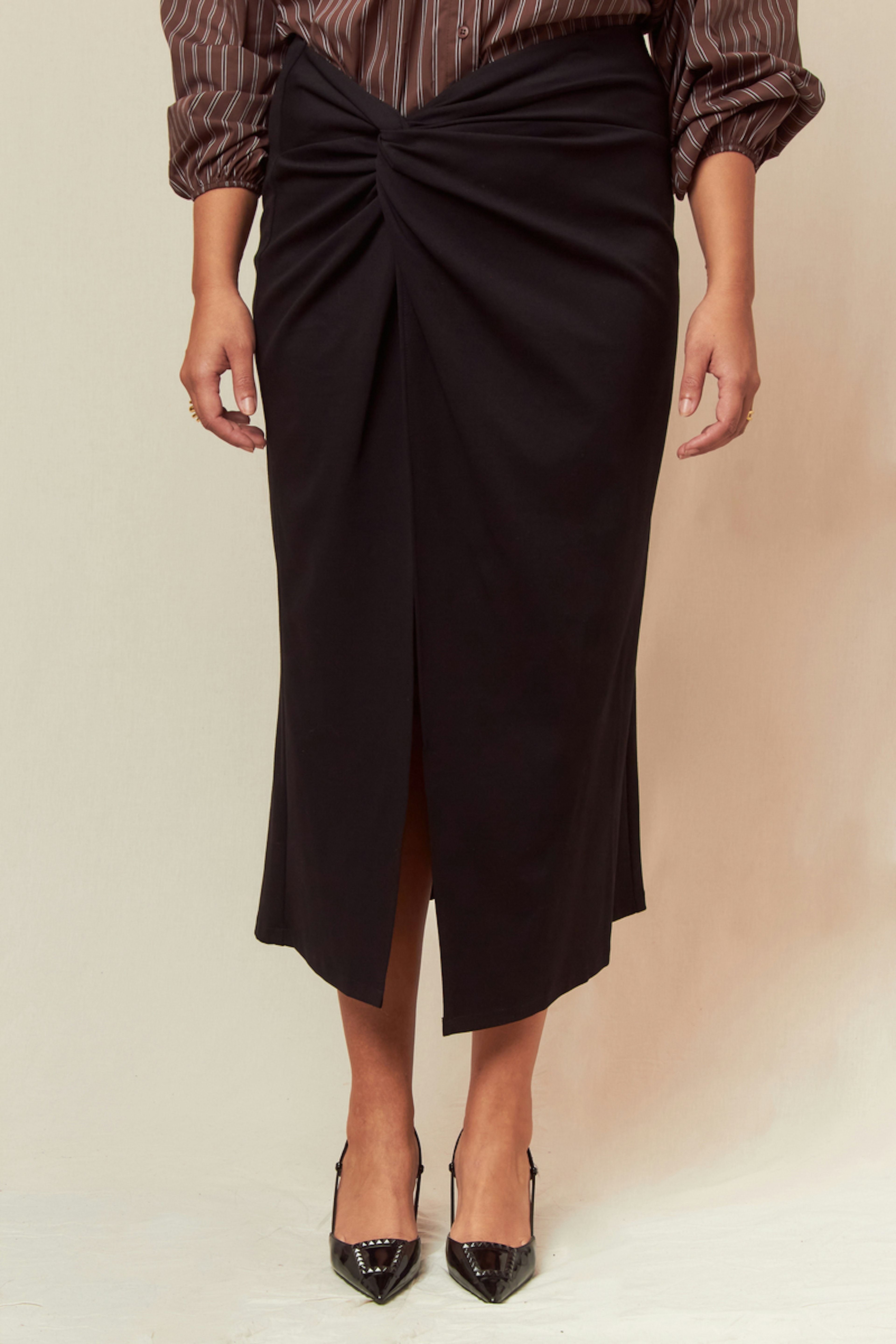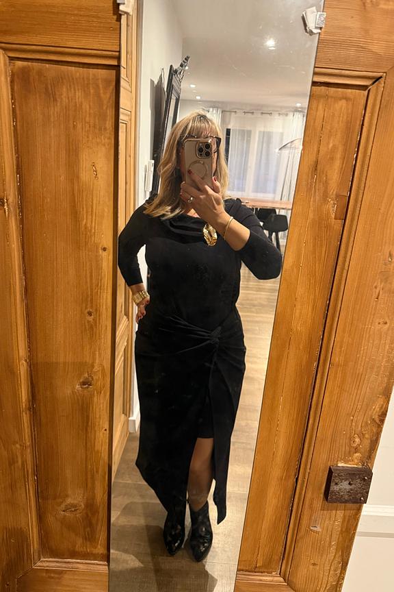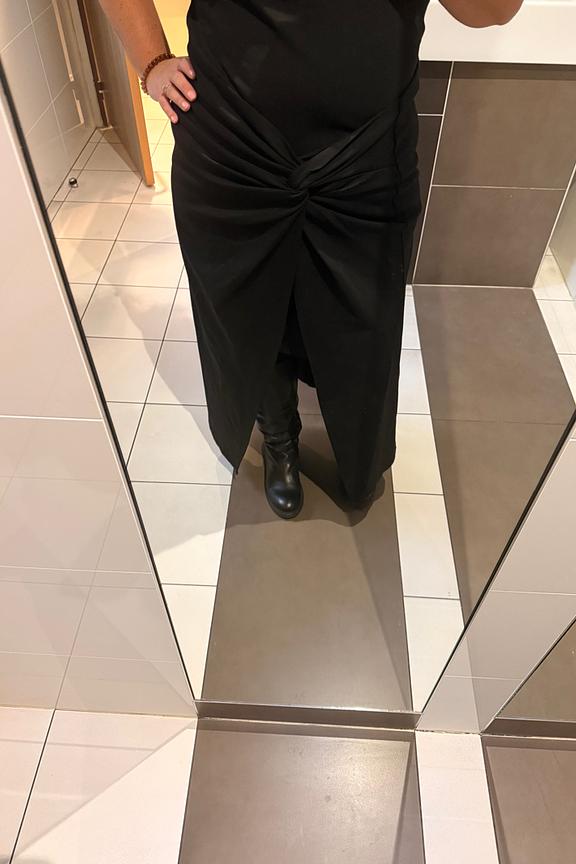 Pour un look chic, associez cette jupe avec un pull oversize et des bottines. Parfaite pour l'hiver avec des collants épais ! • Jupe longue • Drapée fluide • Taille haute • Fente avant • Coloris noir