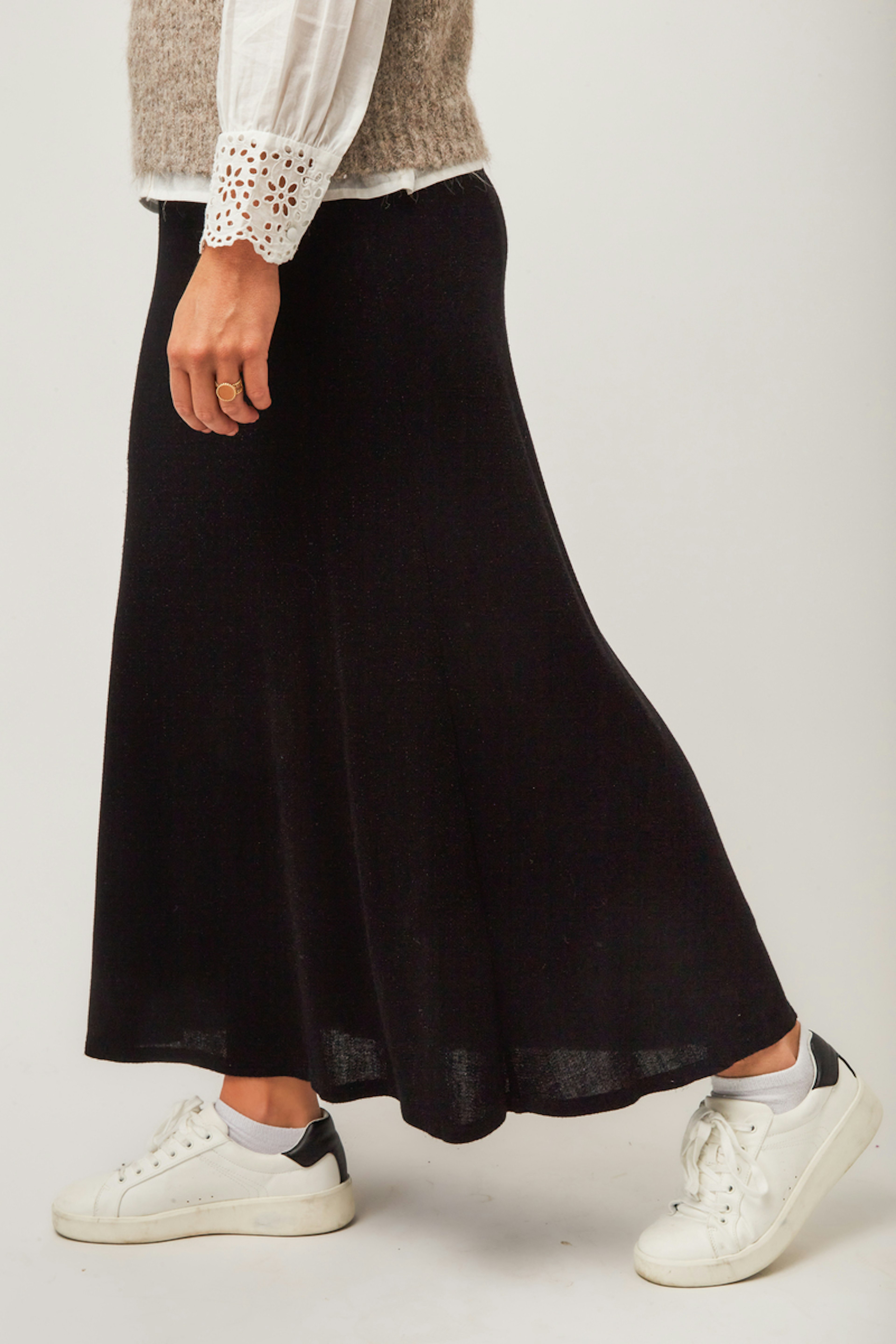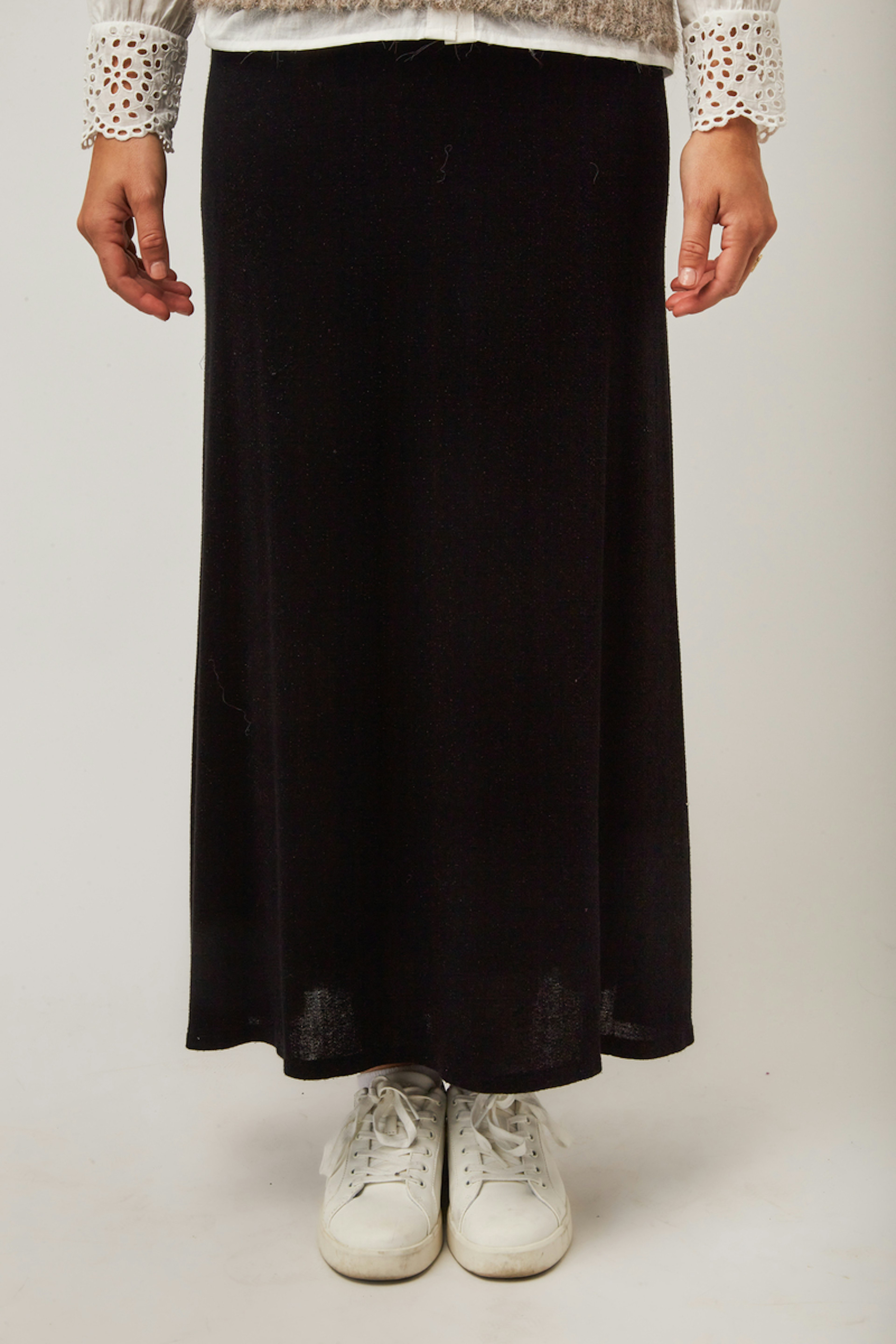 โข Jupe longue en jersey irisรฉ relevรฉ d'un fil mรฉtallique โข Voile et doublure noire โข Coupe รฉvasรฉe avec de lรฉgers volants โข Taille รฉlastiquรฉe โข Longueur : 93 cm.