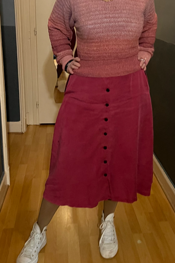 โ€œMagnifique jupe. Doublรฉe, qui tombe parfaitement. Couleur + foncรฉe que sur la photo du mannequin.โ€