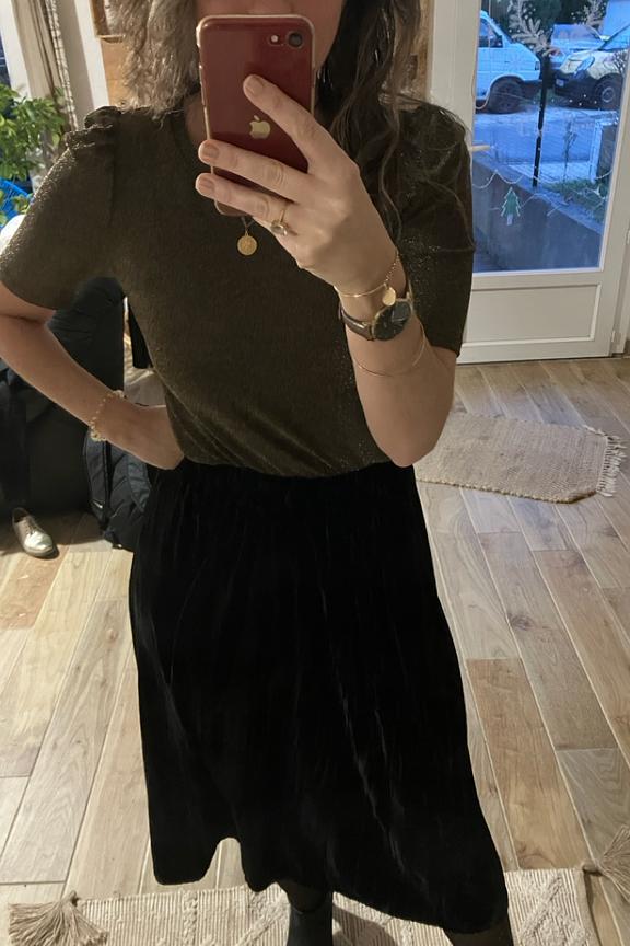 โJolie jupe Elle taille correctement et est tres facile a porter Elle est parfaite soit pour le travail soit pour une sortie un peu plus habillรฉe Il suffit juste de modifier le haut (top ou chemisier)et de l' accessoiriserโ