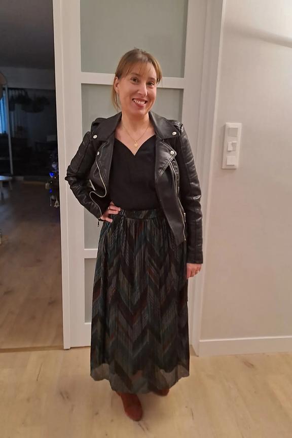 โข Jupe midi avec reflets brillants mรฉtalliques โข La jupe midi Colada vous offre une silhouette fรฉminine et รฉlรฉgante โข Elle possรจde un jupon opaque qui permet de mettre en valeur le voile colorรฉ et brillant โข Ses motifs chevrons de couleurs rouge, argentรฉ, bleu canard, jaune apportent de la fantaisie ร l'ensemble