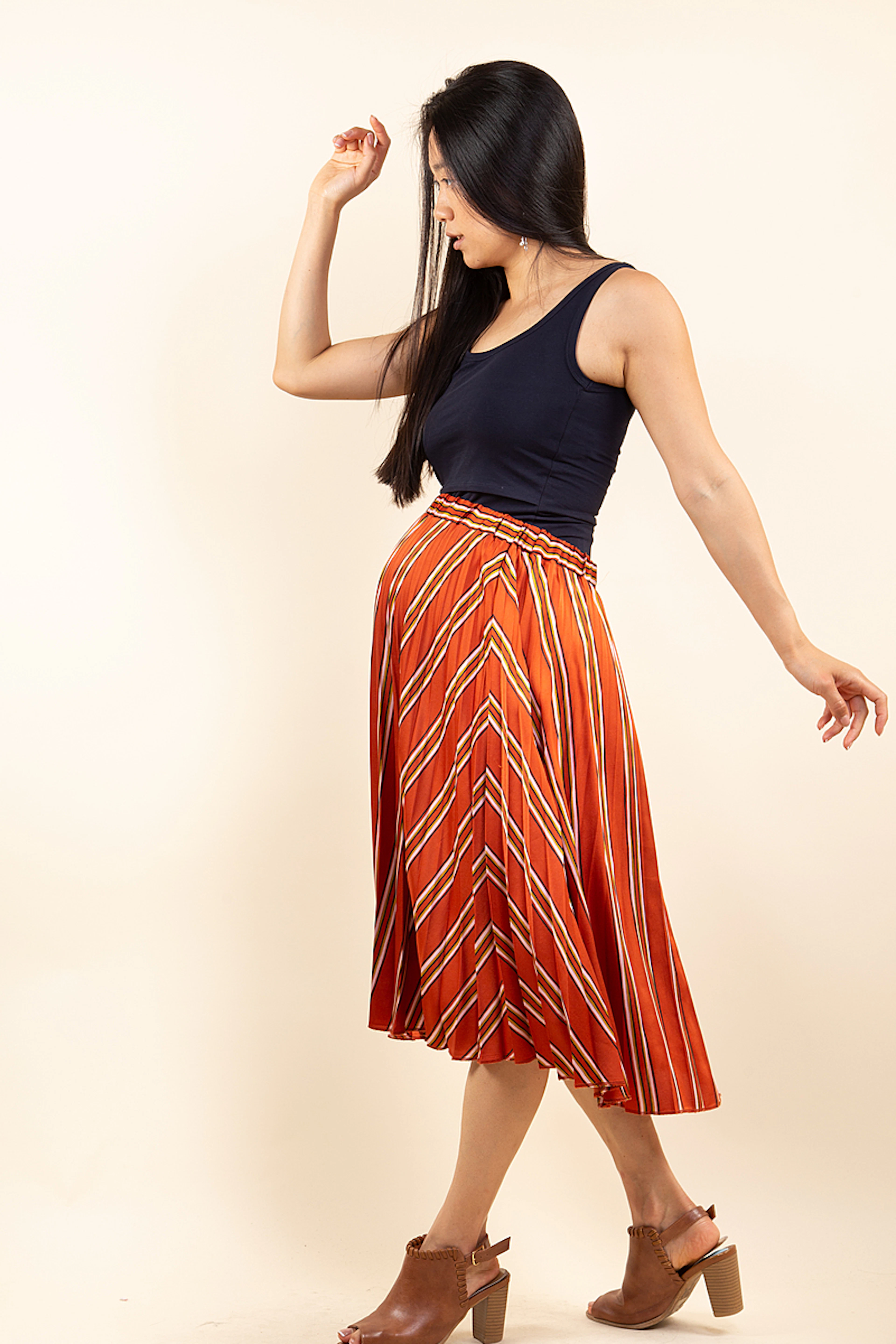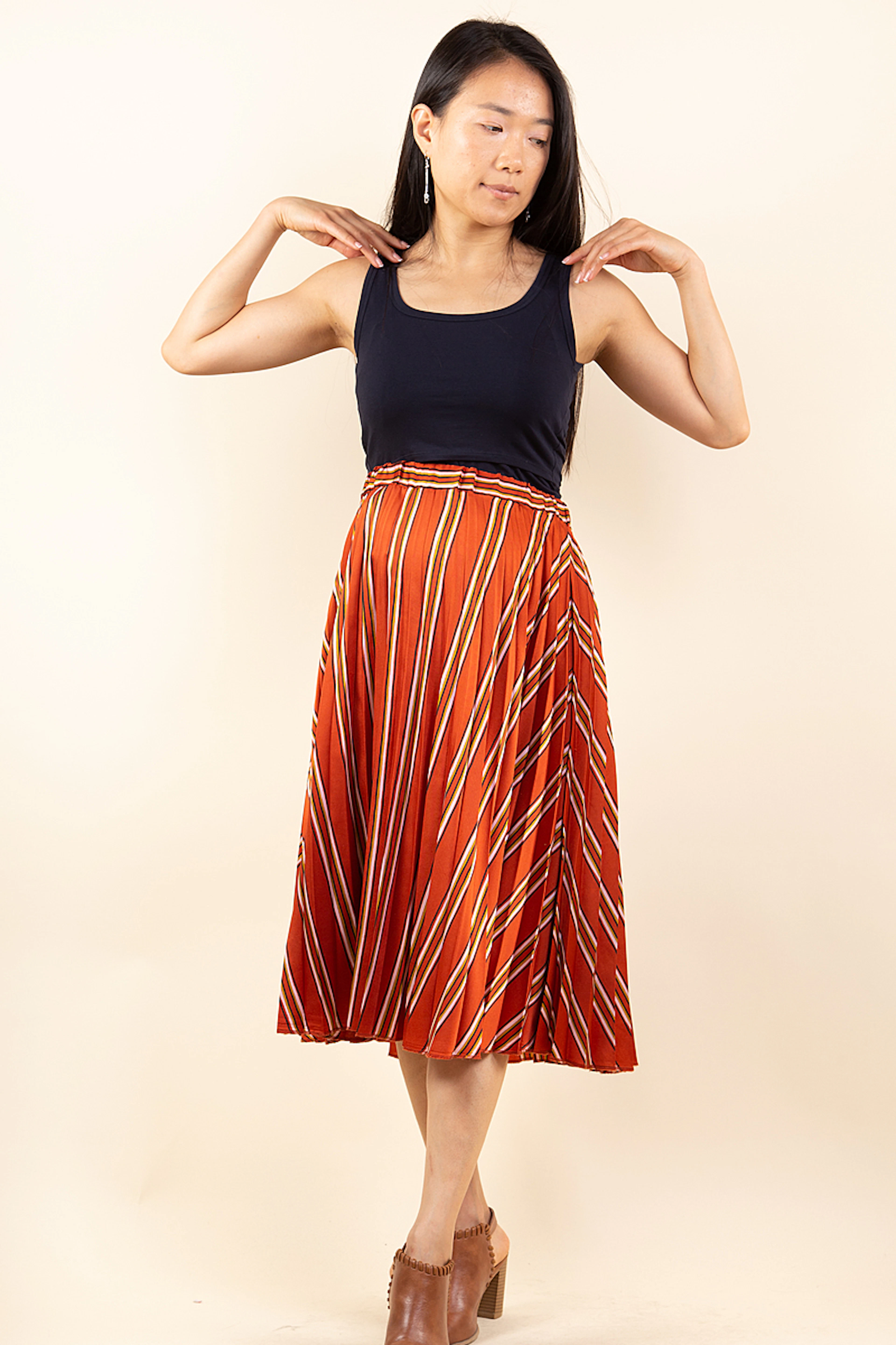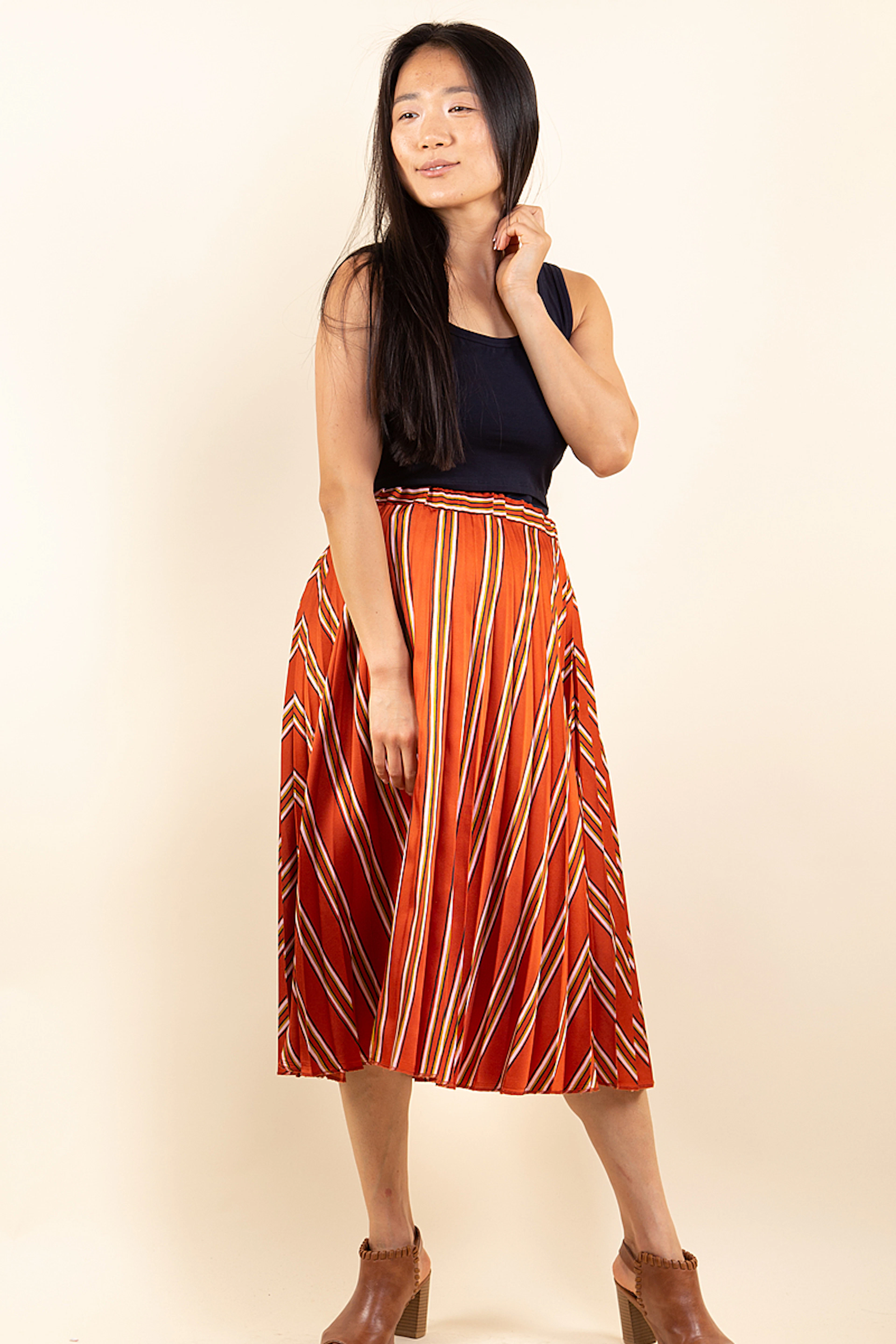 La jupe de maternité Charlotte créée par Pomkin est parfaite pour mettre en valeur le ventre arrondi des futures mamans. Sa taille haute et son plissé soleil allongent la silhouette. Elle est confectionnée dan un tissu soyeux et satiné. On peut l’associer à un débardeur ou une chemise un peu loose pour un look ultra branché. Longueur au dessous du genou. Entièrement doublée. Ce vêtement de grossesse proposé à la location est une crétion de la marque Pomkin.