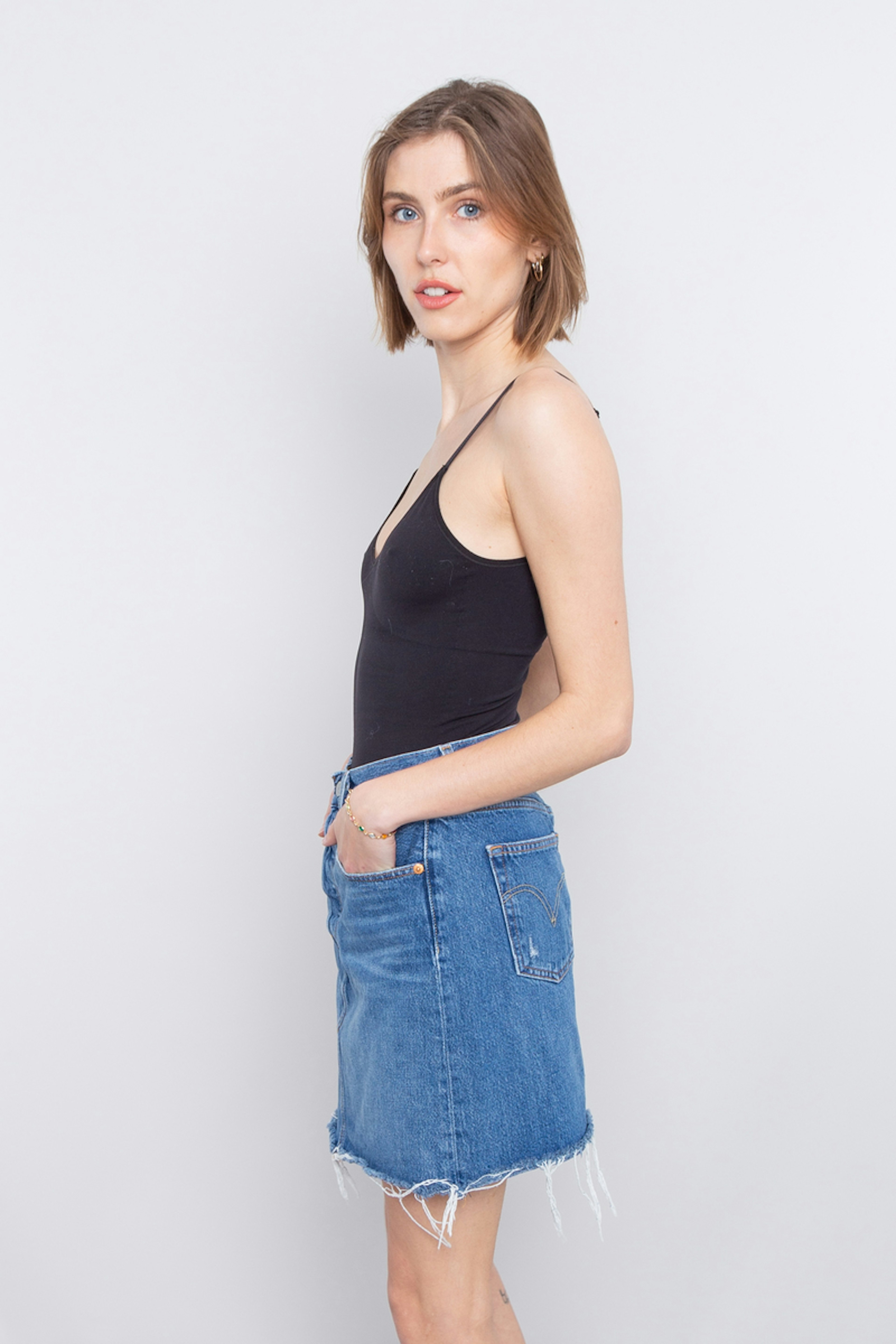 La jupe trapรจze en jean est un classique de la garde-robe. Ce modรจle a รฉtรฉ revisitรฉ par le cรฉlรจbre jeaner. Cette jupe est conรงue d'aprรจs le procรฉdรฉ Water<Lessยฎ, un processus innovant mis au point par la marque qui utilise moins d'eau que les finitions de denim classiques. Les tailles proposรฉes sont les tailles amรฉricaines du 25 au 31 qui correspondent aux tailles franรงaises du 34 au 46. Nous vous conseillons de sรฉlectionner votre taille habituelle.