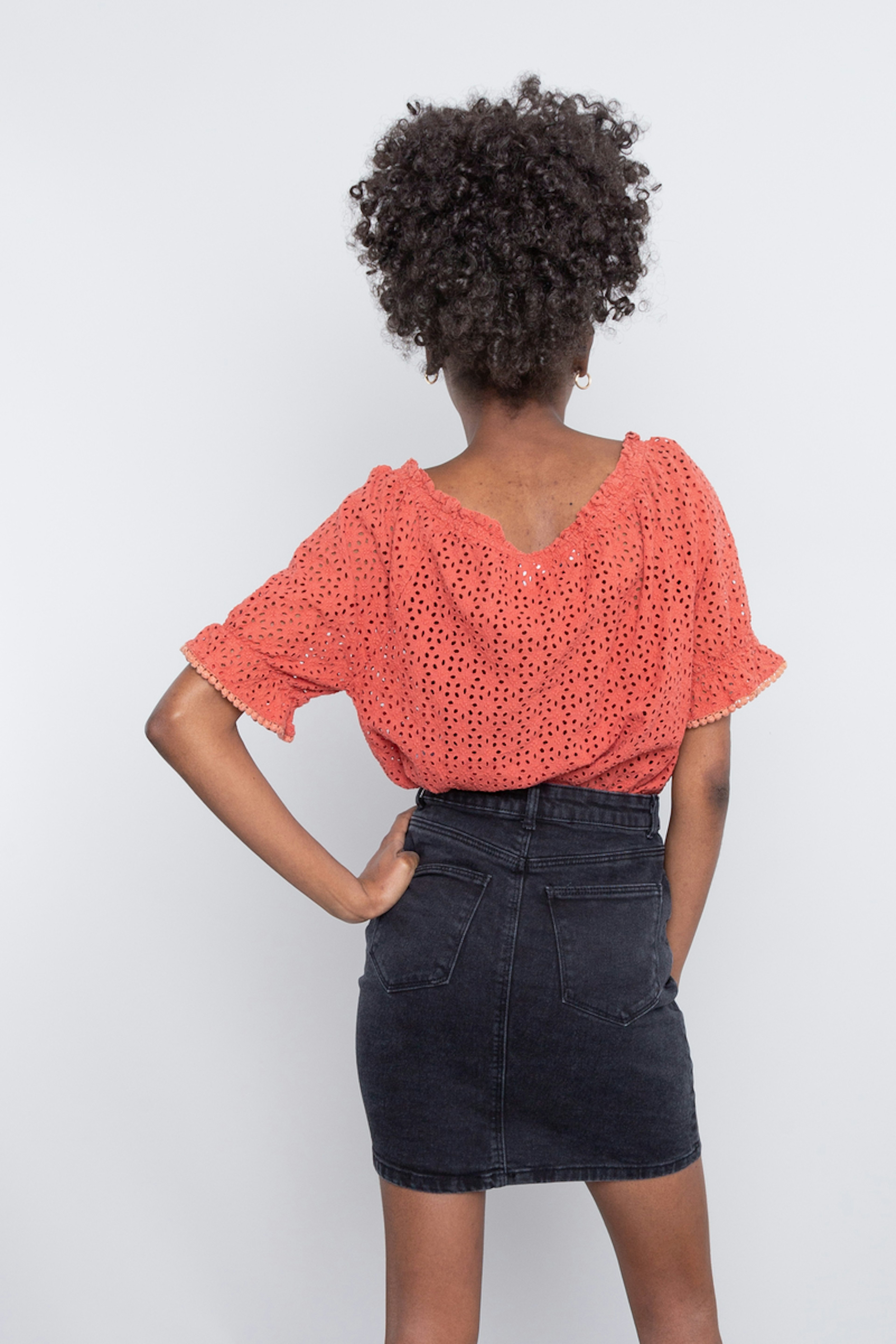 Eike est une jupe en denim noire qui se porte aussi bien en รฉtรฉ avec un petit top qu'en hiver avec un pull;