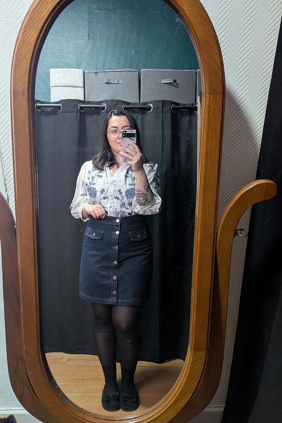 “Très jolie ! Agréable à porter. Simple mais efficace. Prendre une taille au dessus si vous avez pas mal de fesses.”