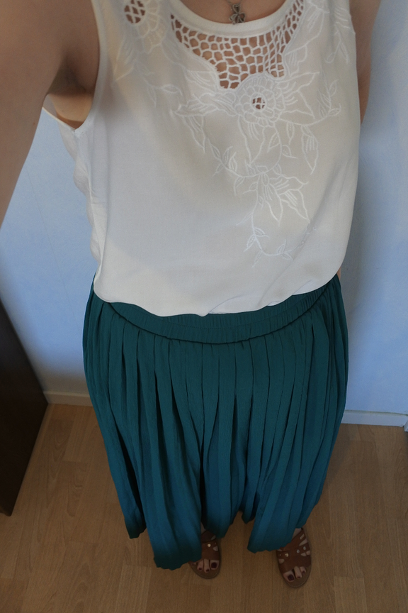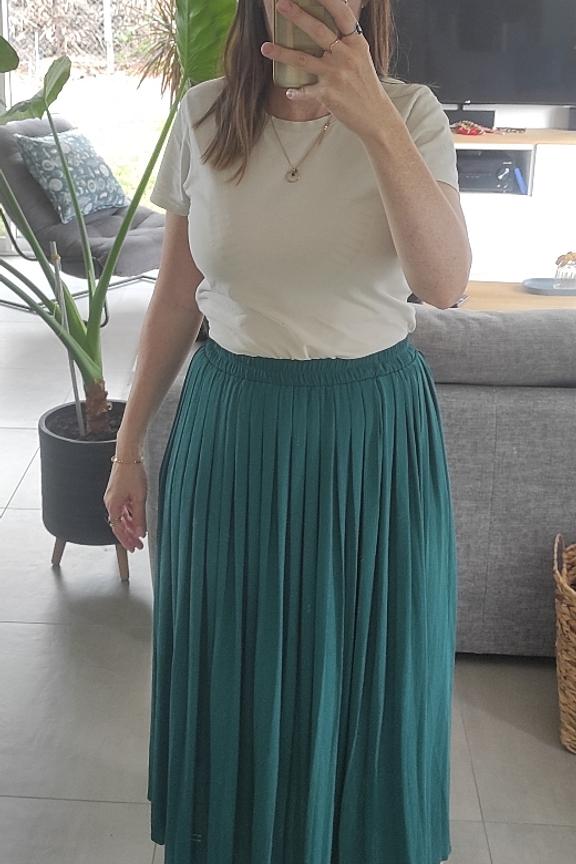 โข Jupe plissรฉe en voile longueur midi โข Ceinture bande large รฉlastiquรฉe โข Doublรฉe
