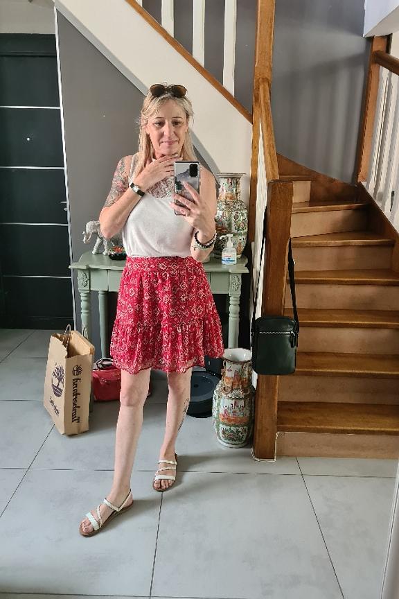 โSuper jolie jupe, pas trop courte, ne serre pas trop la taille et elle va avec tous types de hauts et de chaussures.โ