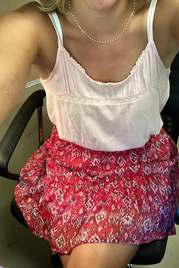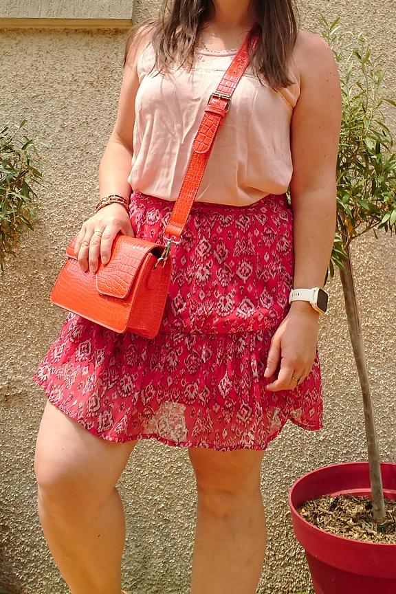 Associez cette jupe rouge pour un look estival avec un dรฉbardeur blanc et un blouson en jean pour les soirรฉes fraรฎches. Ajoutez des sandales ร laniรจres pour une touche de chic dรฉcontractรฉ. Idรฉale pour les journรฉes ensoleillรฉes. โข Jupe courte โข Coupe fluide โข Taille รฉlastique โข Motif โข Parfait pour l'รฉtรฉ