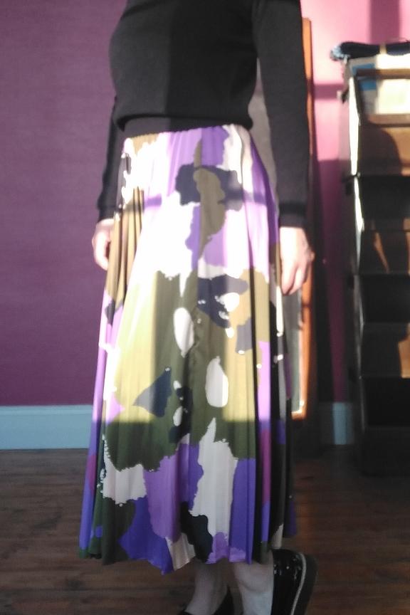 โข Jupe plissรฉe ร imprimรฉs multicolores โข Longueur midi โข Coupe fluide โข Taille รฉlastique