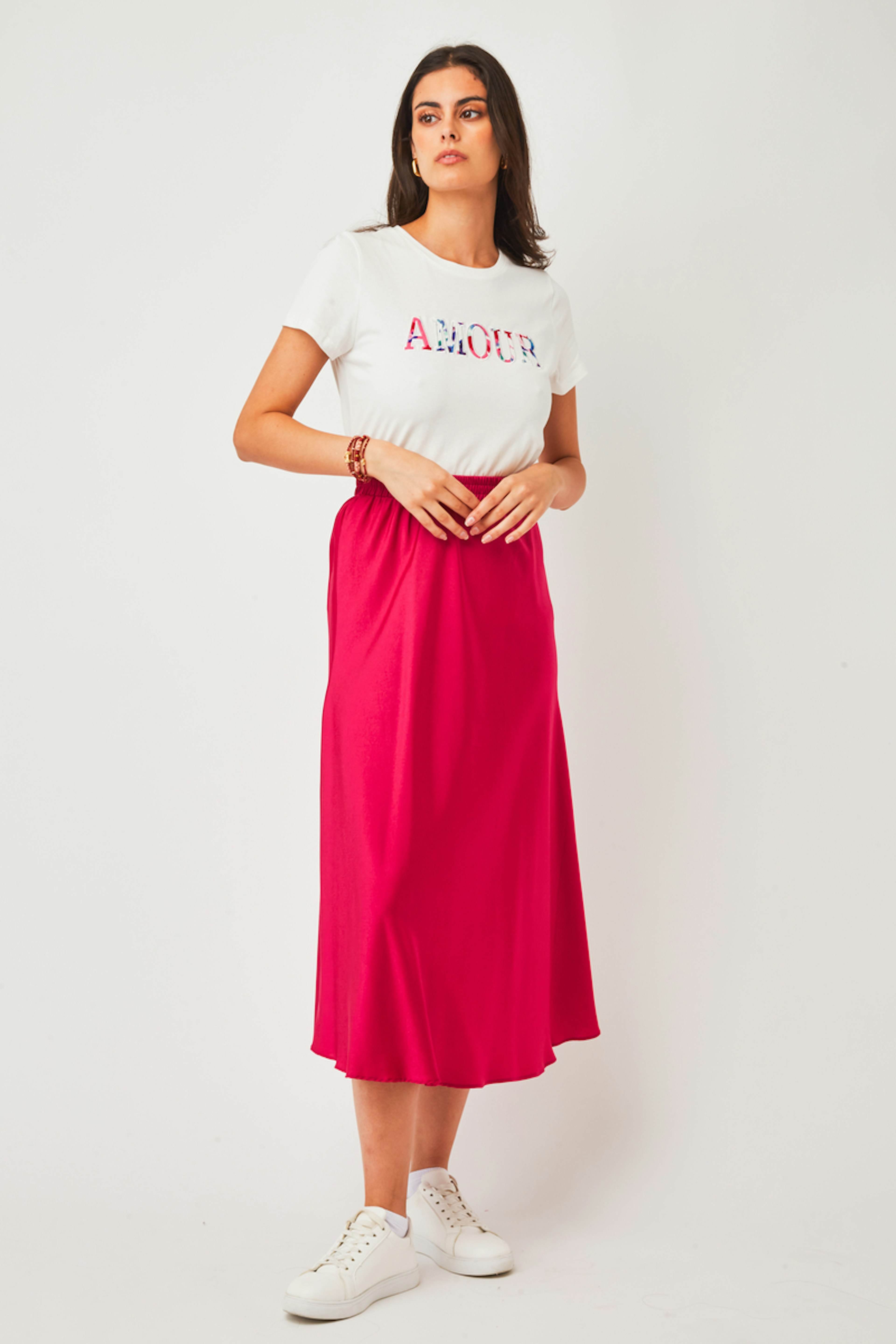 โข Tissu satinรฉ โข Coupe lรฉgรจrement รฉvasรฉe โข Longueur midi โข Ceinture รฉlastique ร la taille โข Finitions surpiquรฉes โข Longueur du produit depuis la taille pour la taille S : 85 cm